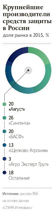 Впрочем, глобальный тренд помог не только «Августу». У других крупных игроков схожая динамика роста: к примеру, входящая в пятерку лидеров компания «Щелково Агрохим» с 2011 по 2015 год нарастила выручку в 2,6 раза, с 3,8 млрд до почти 10 млрд руб., российская «дочка» Syngenta — почти вдвое, до 20,1 млрд руб., по данным «СПАРК-Интерфакс».