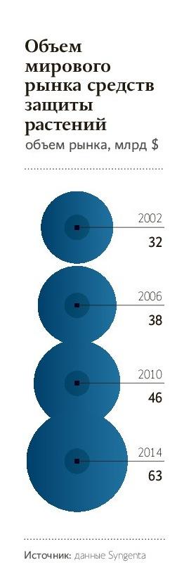 Увеличивать закупки есть куда: в России в пересчете на 1 га используется на порядок меньше пестицидов, чем в Европе. В Германии сельхозпроизводители тратят на средства защиты в среднем по $244 на 1 га, в Чехии — $126, в России — не более $15, отмечают эксперты компании Kleffmann Group. Объем отечественного рынка в 2015 году Усков оценивает в $1,2 млрд, еще в 2011-м он не превышал $860 млн (данные Агростата). Мировой рынок за пять лет вырос почти на 40%, до $60 млрд (данные Syngenta).