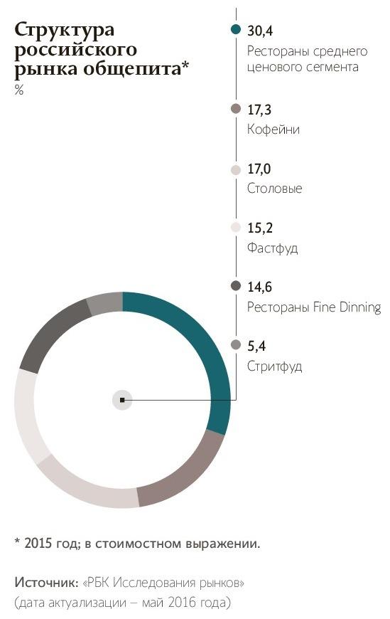 С мая 2015 года по май 2016-го российский рынок покинули 25 сетей, а прирост количества сетевых ресторанов составил 3,3% против 11,2% в 2013–2014 годах.