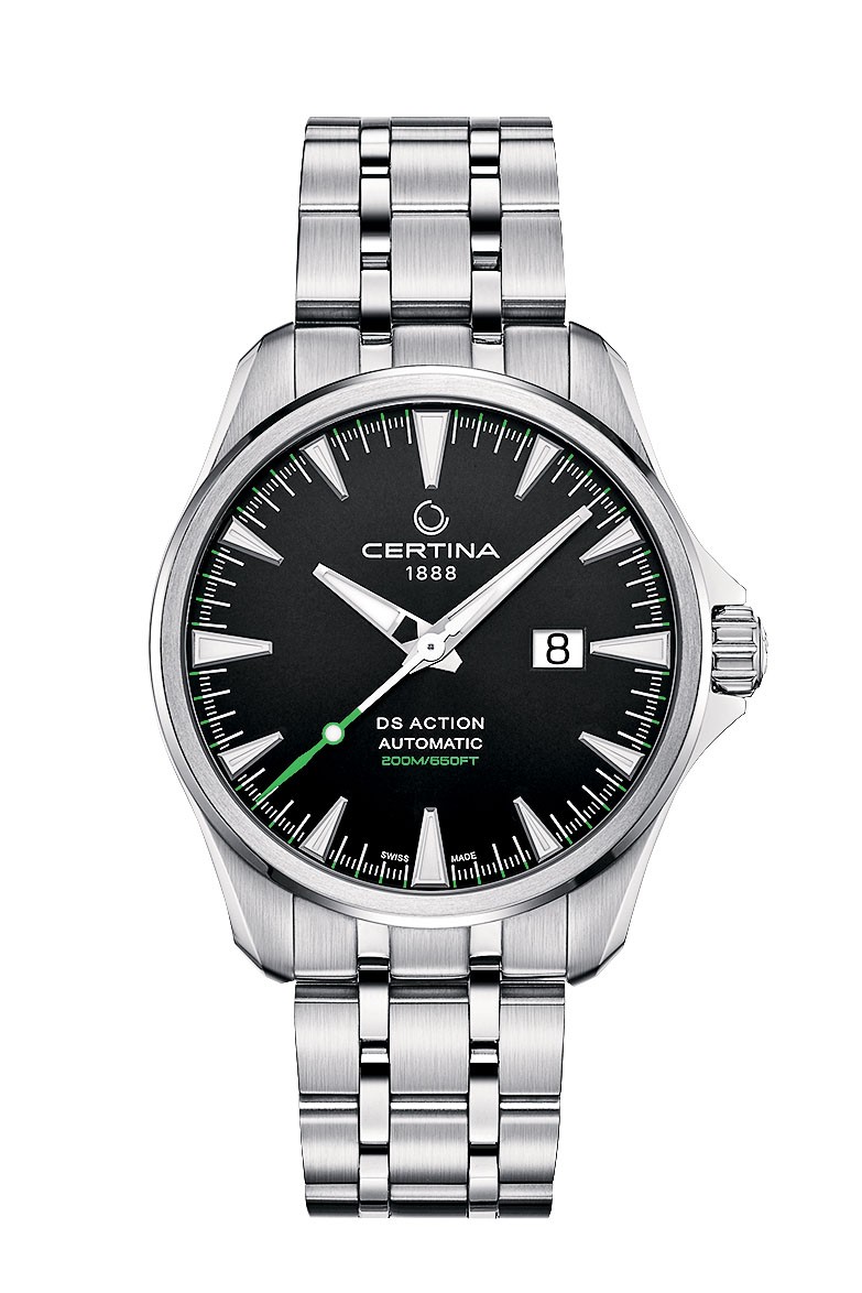 Ровно 130 лет назад братья Адольф и Альфред Курты основали часовую компанию в Гренхене. Латинский вариант названия швейцарского города — Grana — в начале XX века служил названием бренда. Но впоследствии было решено, что имя должно выражать идею надежности и долговечности часов: так, начиная с 1938 года фирма называется Certina. Важной вехой в истории компании стала разработка концепции DS (Double Security) в 1959 году: дополнительные элементыуплотнители помогли повысить ударопрочность и водонепроницаемость часов. Сегодня система «двойной надежности» используется во всех линейках Certina, а все модели отмечены аббревиатурой DS на фоне черепашьего панциря. Не стала исключением и новинка DS Action Big Date Automatic с крупным окном даты в позиции «3 часа». Автоматический калибр ETA 2826 надежно упакован в стальной корпус диаметром 41 мм, который обладает практически «дайверской» герметичностью — до глубины 200 м.