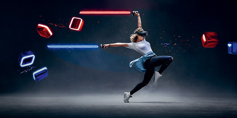 Например, в игре Beat Saber, запущенной в 2019 году, игроки используют контроллеры в качестве световых мечей, чтобы разрезать цветные блоки, летящие на них в виртуальной среде. Сначала игра была популярна из-за своей механики, но со временем усложнение уровней сделало ее в буквальном смысле физически изнуряющей, и многие фитнес-тренеры теперь предлагают своим клиентам использовать Beat Saber как полноценное интерактивное кардиоупражнение.