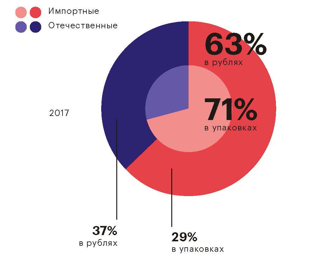 Структура продаж импортных и отечественных лекарственных препаратов