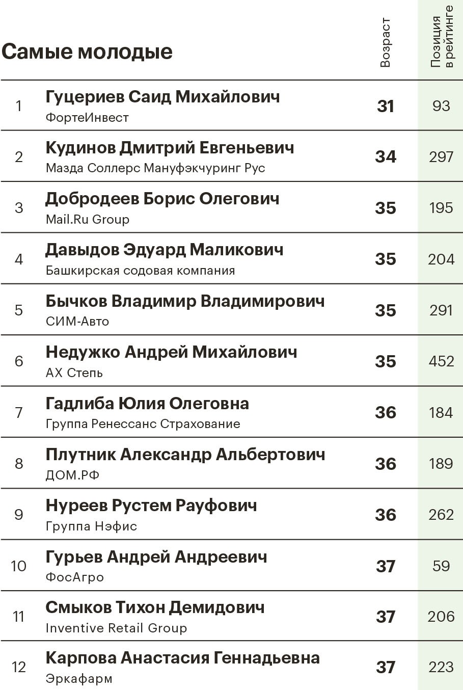 Каков возраст участников рейтинга