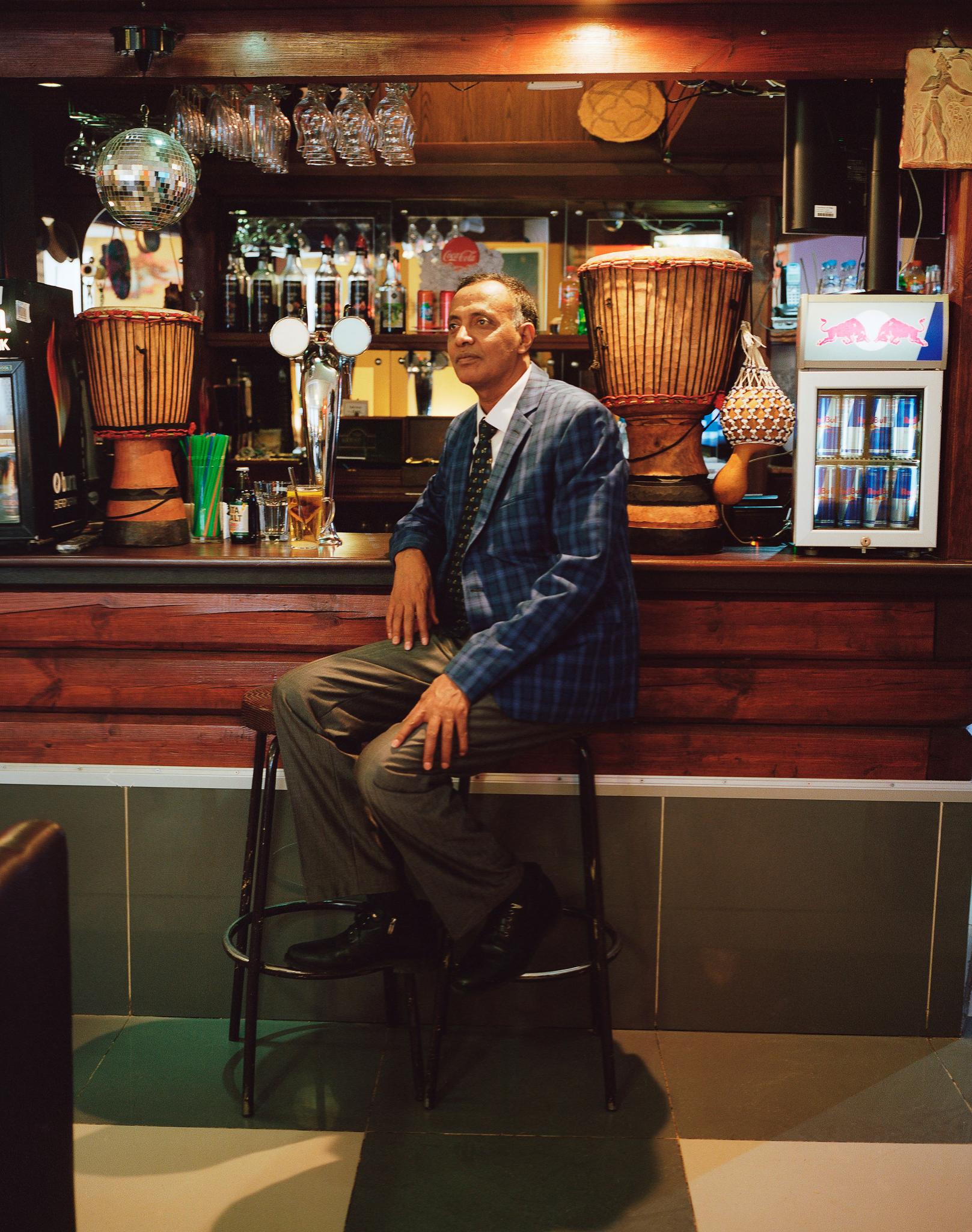 54-летний Тефера Васие никогда не думал, что будет жить в России. Он приехал в Москву в 1986 году из Эфиопии. К тому моменту Тефера окончил университет и полтора года работал на текстильной фабрике. В РУДН он решил освоить востребованную на родине профессию горного инженера. «Я поселился в этом общежитии, а это дерево было совсем маленьким», — показывает предприниматель на здание и высокий вяз за окном, встречая корреспондентку журнала РБК в кафе «Авеню». В шесть часов вечера в будний день в заведении заняты несколько столов. Стены украшены картинами из Эфиопии, у барной стойки прозрачный шкаф с национальными сувенирами — клиенты могут их купить.