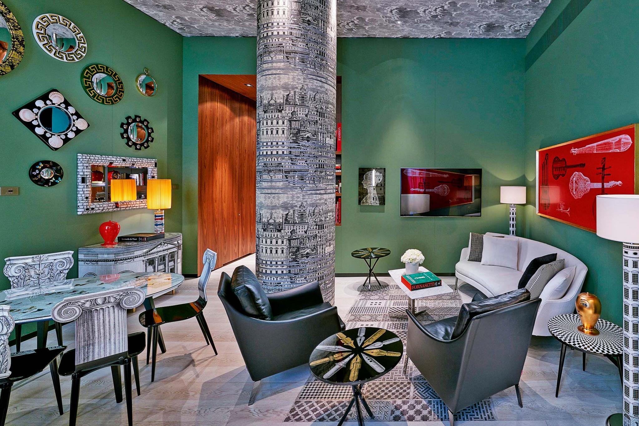 «Мона Лиза» Леонардо да Винчи, «Мэрилин Монро» Энди Уорхола и «Наталина Кавальери» Пьеро Форназетти — самые узнаваемые и растиражированные портреты последних 500 лет. И хотя из этой компании меньше всего знают Лину Кавальери, ничье изображение не было воспроизведено так массово и в таком разнообразии в предметах дизайна. Сложно поверить, но даже Пьеро Форназетти никогда не был знаком с этой итальянской красавицей и оперной певицей, хотя она стала музой художника на всю его жизнь, а бюро Fornasetti до сих пор создает все новые остроумные вариации на тему прекрасного лица Лины. Впрочем, на счету главного обманщика и иллюзиониста итальянского дизайна около 13 тыс. работ самых разных сюжетов. Их можно найти на выставках по всему миру, но самое большое удовольствие доставляет встреча с ними в их естественной среде обитания — в жилом интерьере. А еще лучше, когда за окнами этого помещения — Милан, родной город Форназетти. Все эти условия сходятся в уникальном номере Fornasetti Suite отеля Mandarin Oriental.