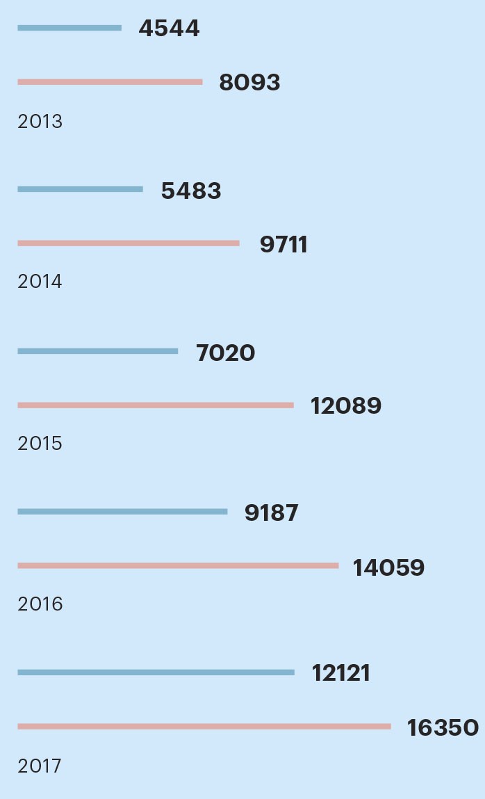 Гендиректор «Магнита» Ольга Наумова дебютировала в рейтинге «25 женщин — CEO российского бизнеса» сразу на первой позиции. Иначе и быть не могло: впервые в истории российского бизнеса женщина возглавила компанию такого масштаба. Выручка «Магнита» в 2017 году составила 1,14 трлн руб., и в рейтинге РБК 500 компания заняла девятое место. Но для «Магнита» этого мало — Наумовой надо придумать, как обойти бывшего работодателя и нынешнего конкурента, X5 Retail Group