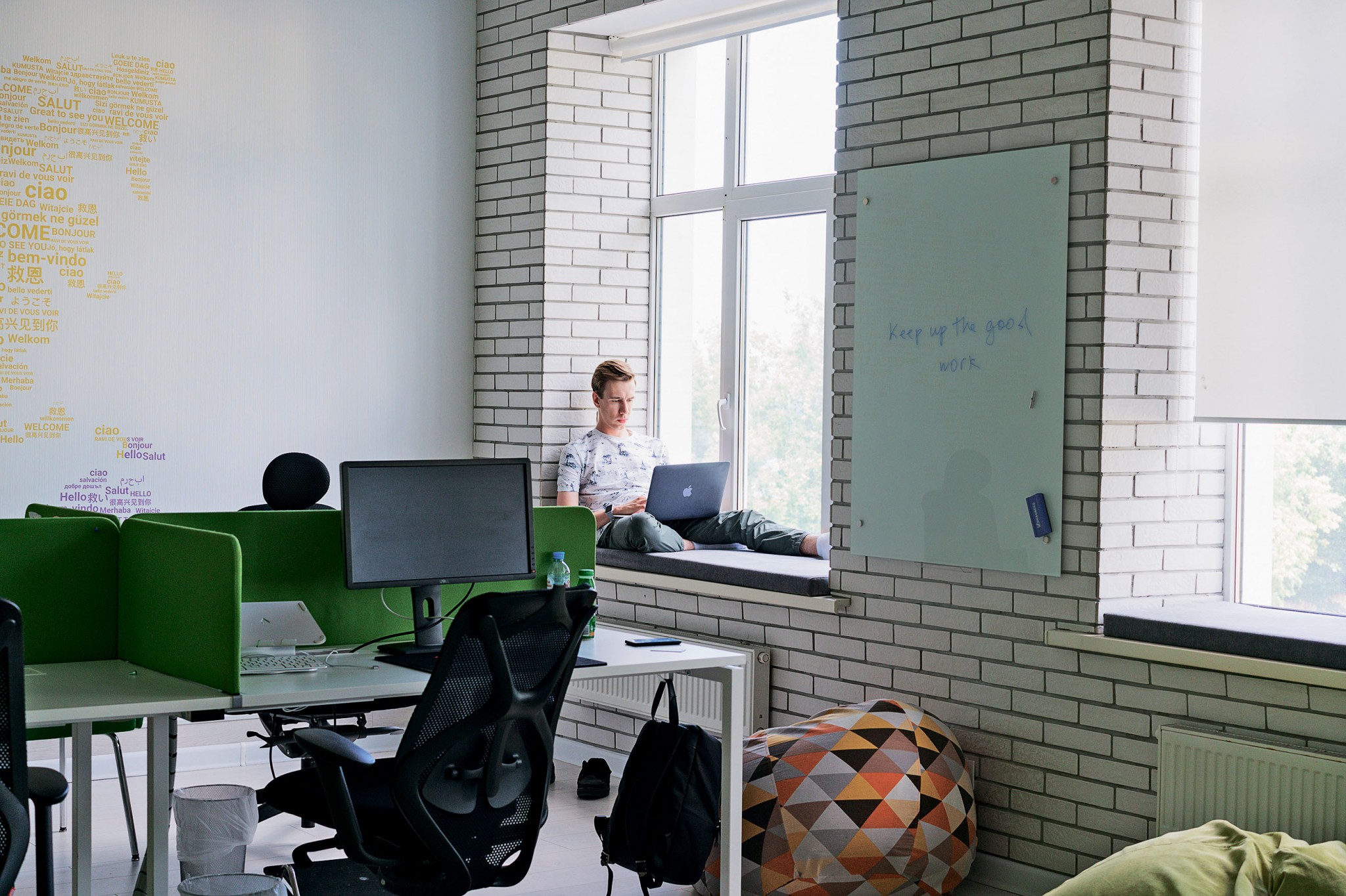 Оставить много свободного пространства Баландин задумал заранее: специалисты должны иметь возможность прогуляться, посидеть на диване с чашкой кофе, воспользоваться конференц-залом или переговорной. «Когда десять лет сидишь друг напротив друга весь день, наступает эмоциональное выгорание», — предупреждает бизнесмен.
