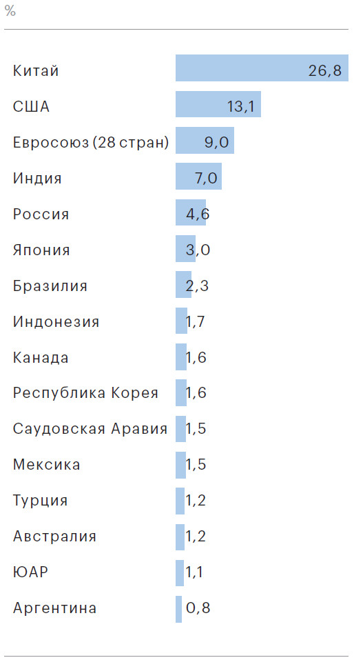 Доля стран в мировом выбросе парниковых газов