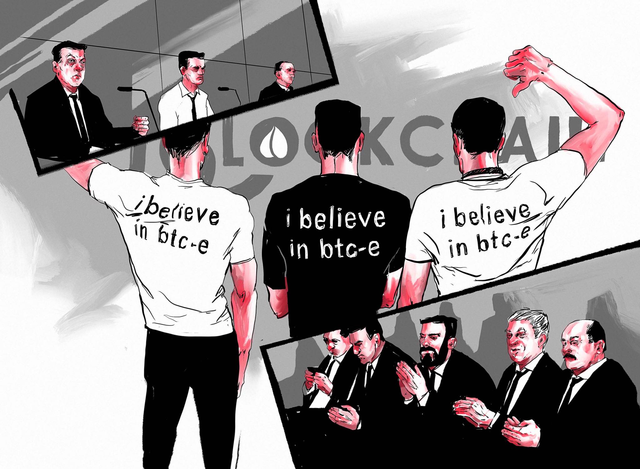 В конце августа в Twitter-аккаунте биржи BTC-e опубликовали фотографию: три человека стоят спиной в футболках «I believe in BTC-e». На заднем плане — пресс-волл с названием конференции «Blockchain — новая нефть России», которая проходила в те же дни в «Иннополисе». Снимок взорвал профильные форумы: разгневанные клиенты закрытой биржи начали расследование, пытаясь вычислить, кто из собственников BTC-e таким образом передал им «привет».