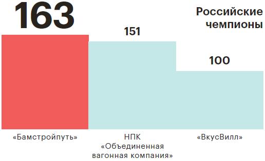 Российские компании опережают иностранцев по темпам роста: среднегодовой рост отечественных участников нового рейтинга составил 48%, зарубежных — 35%. «Наш» чемпион «Бамстройпуть» в 2014–2016 годах показал среднегодовой прирост выручки 163%, а иностранные «Савушкин продукт — Москва» и «Исузу Рус» за тот же период — только 52%. Торговля является безусловным лидером обоих рейтингов: на этот сектор пришлось 53% совокупной выручки 50 российских компаний и 66% — 15 иностранных.