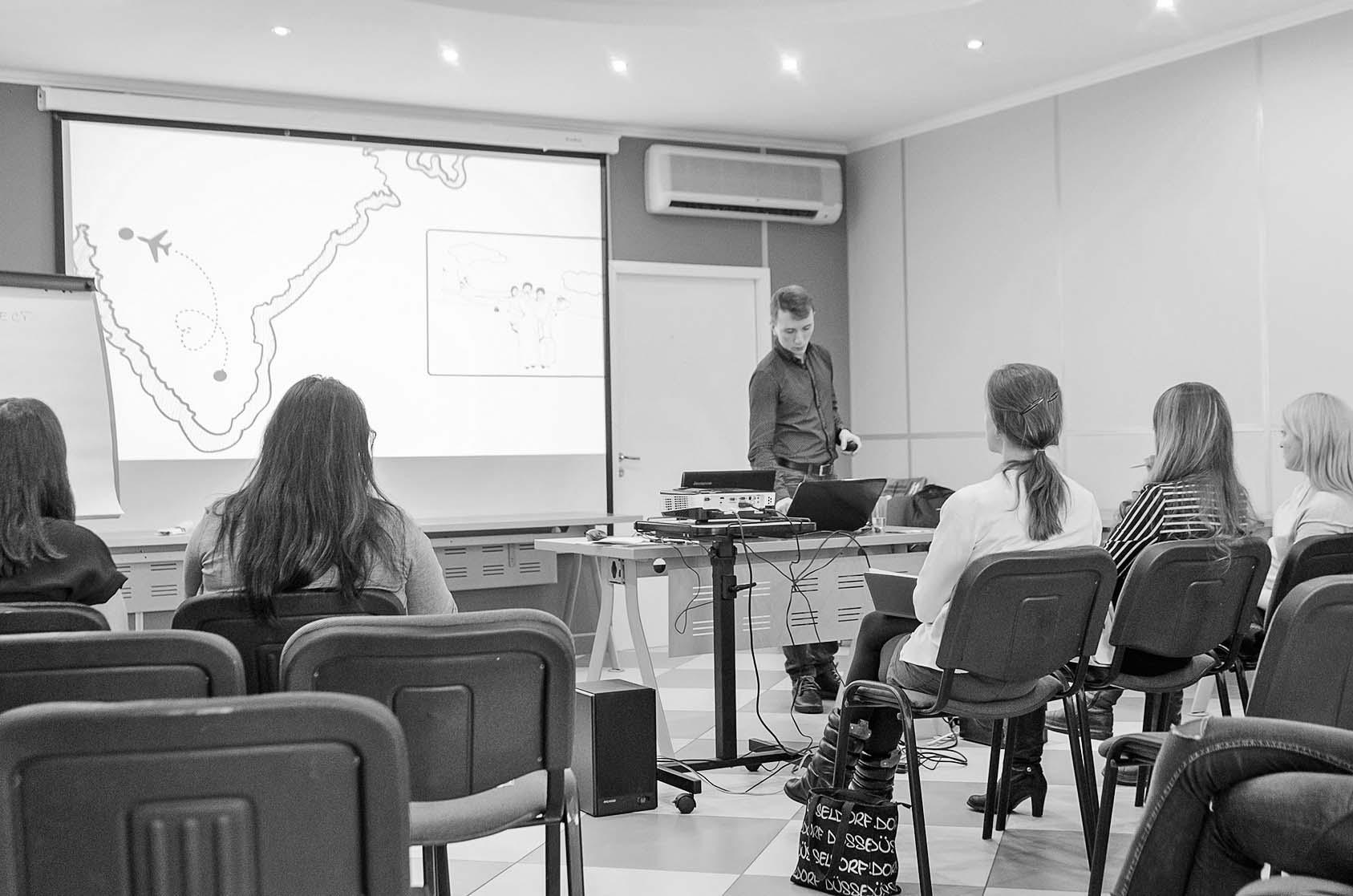 Акселератор состоит из видеокурса и практических занятий. Теоретическую часть ради экономии Маннапов перевел в онлайн: в видеокурсе 12 модулей, в основе — методики, которые использует большинство западных акселераторов — customer development (тестирование идеи на потенциальных потребителях) и lean startup (концепция бережливого производства). На создание курса ушло несколько миллионов рублей. Практические занятия — трекшн-митинги, семинары проводятся на партнерских площадках и в вузах, в основном бесплатно.