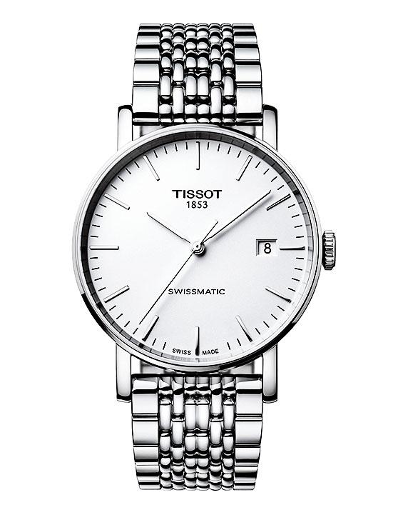 Гигант швейцарской часовой индустрии компания Tissot неустанно продвигает в жизнь принцип «золотое качество по серебряной цене». Популярная коллекция городских часов на каждый день Tissot Everytime, выпускаемая прежде исключительно с кварцевым механизмом, причем как в мужской, так и в женской версии, получила новый автоматический калибр с трехдневным запасом хода. Swissmatic (модифицированный Tissot калибр Swatch) производится автоматизированным способом, что позволяет заметно снизить цену готового продукта. В итоге стоимость моделей унисекс в 40-миллиметровом стальном корпусе не превышает €300. В ассортименте простые белые или черные циферблаты с тонкими стрелками и индексами (в некоторых моделях метки-палочки дополнены арабскими цифрами) и контрастным индикатором даты в позиции «три часа», а также богатый выбор браслетов: из нержавеющей стали, кожи и тканево-синтетические ремешки NATO.