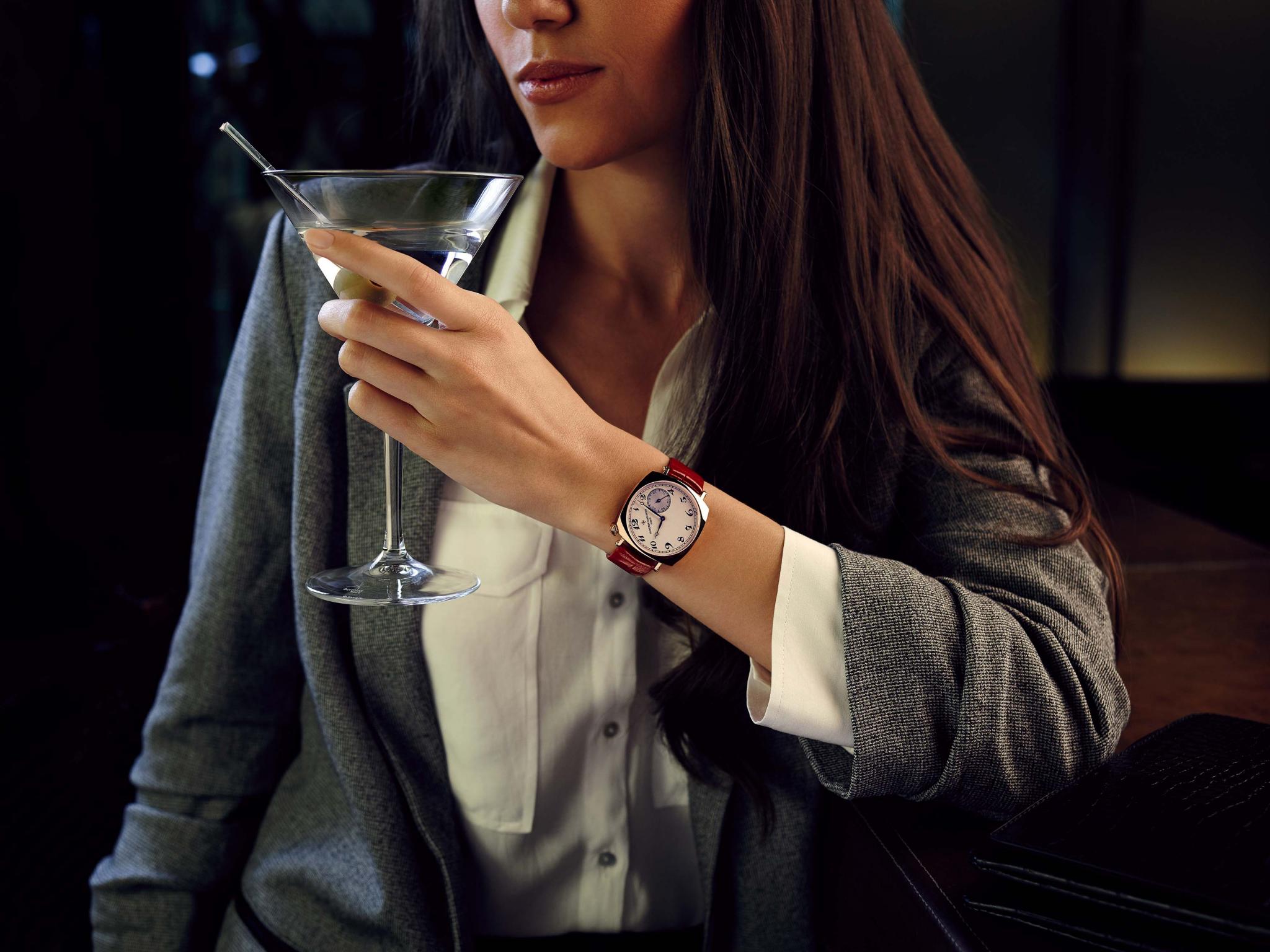 Почти 20 лет среди коллекций Vacheron Constantin существует собрание Historiques. Это переизданные в последние годы исторические модели часов, чьи технические и художественные достоинства уже давно стали предметом страсти коллекционеров. Corne de Vache 1955, Ultra-fine 1955, Chronometre Royal 1907. В этой же серии есть и узнаваемые модели American 1921, впервые выпущенные в те самые «ревущие двадцатые» для американского рынка. Часы сразу запоминаются благодаря повернутому по диагонали корпусу-подушке и помещенной в один из углов заводной коронке. В 1920-е таких экземпляров было выпущено всего десять. Интерес к этой удивительной модели, одновременно мужской и женской, классической и оригинальной, возобновился в XXI веке. Перезапуск случился в 2008-м: в «подушку» размерами 40×40 мм из платины или розового золота был уложен калибр с ручным заводом 4400. Спустя почти десять лет мануфактура предлагает миниатюрную версию American 1921 в корпусе из розового золота диаметром всего 36,5 мм с тем же калибром 4400 AS. Считается, что ими заинтересуется не только женская аудитория, но и мужчины — обладатели изящных запястий, поэтому в комплекте имеются два кожаных ремешка: более сдержанный темно-коричневый и более модный красный. Время по-прежнему читается по диагонали на циферблате в ретростиле с крупными нарочито-винтажными арабскими индексами и яблочными стрелками.