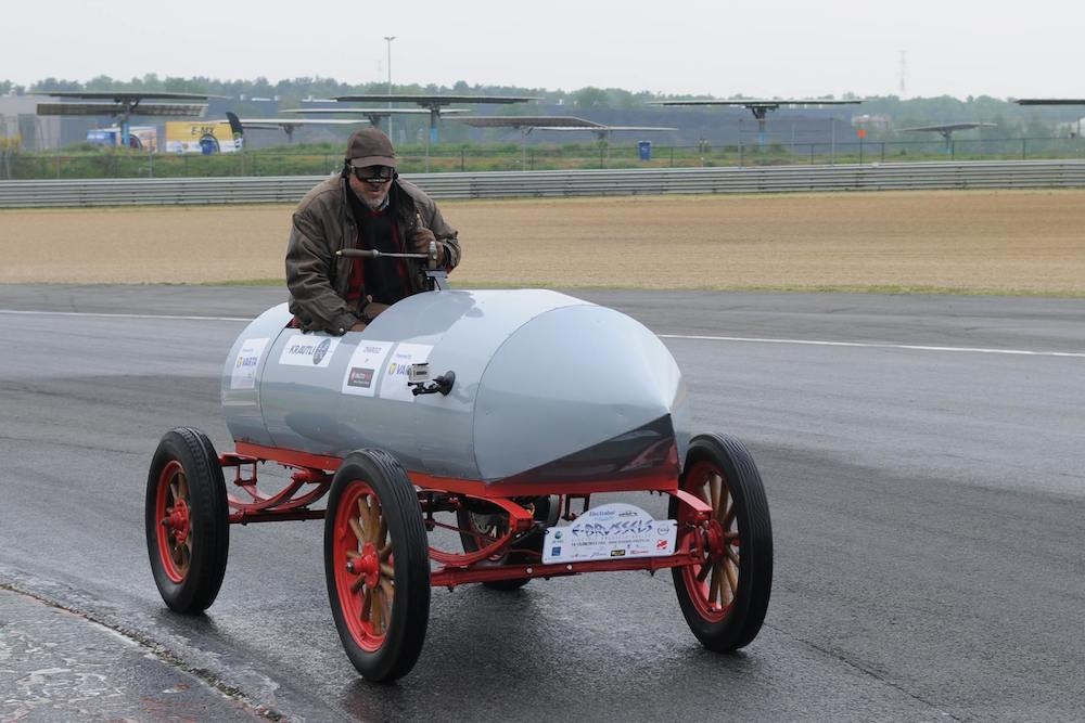 Вот перед нами La Jamais Contente и его водитель. Бельгийский электромобиль – это настоящий болид, первая в истории гоночная машина со специально спроектированным для гонок обтекаемым кузовом.