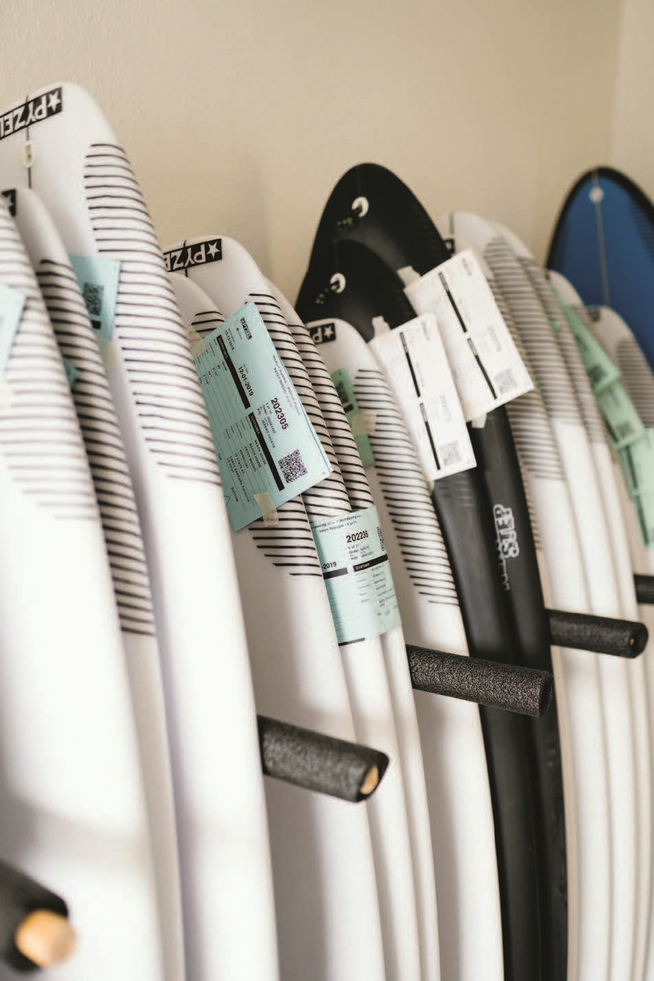 Полный порядок. Перед прохождением контроля качества доски тщательно протирают, чтобы было легко заметить любые изъяны. Затем мастера проверяют, не появились ли после шлифовки сколы или трещины на эпоксидной поверхности, а также ровно ли установлен плавник. Теперь всё готово, чтобы оседлать волну