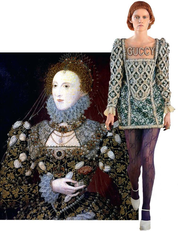 О’Рейли нашла свой подход к сердцу коллекционера, вооружившись инструментами соцсетей и собственными широкими познаниями в истории костюма, которая, как она уверяет, сегодня очень востребована. Чтобы убедиться, что старые мастера снова в моде, достаточно посмотреть на показы в Париже, Лондоне, Милане и Нью-Йорке. «Николя Гескьер из Louis Vuitton и Алессандро Микеле из Gucci явно заимствуют идеи со старинных полотен. Можно проследить, какое именно произведение искусства вдохновило кутюрье», — говорит О’Рейли, пролистывая череду парных изображений в инстаграме (соцсеть признана в РФ экстремистской и запрещена). «Посмотрите на восхитительный воротник в стиле Тюдоров, который Viktor & Rolf показали в осенне-зимней коллекции 2018 года. Их вполне мог вдохновить портрет леди Дианы Сесил, написанный Уильямом Ларкиным в 1614 году. А эти пышные фижмы были в прошлой весенней коллекции Comme des Garçons, — продолжает О’Рейли. — Вам не кажется несомненным сходство с портретами XVIII века Марии Луизы Пармской и Марии Франческо Пиньятелли кисти Антона Рафаэля Менгса в музее Прадо? Ну и конечно, Gucci — мы все знаем об увлечении бренда ренессансной модой, которое началось, когда этот Дом возглавил Алессандро Микеле».
