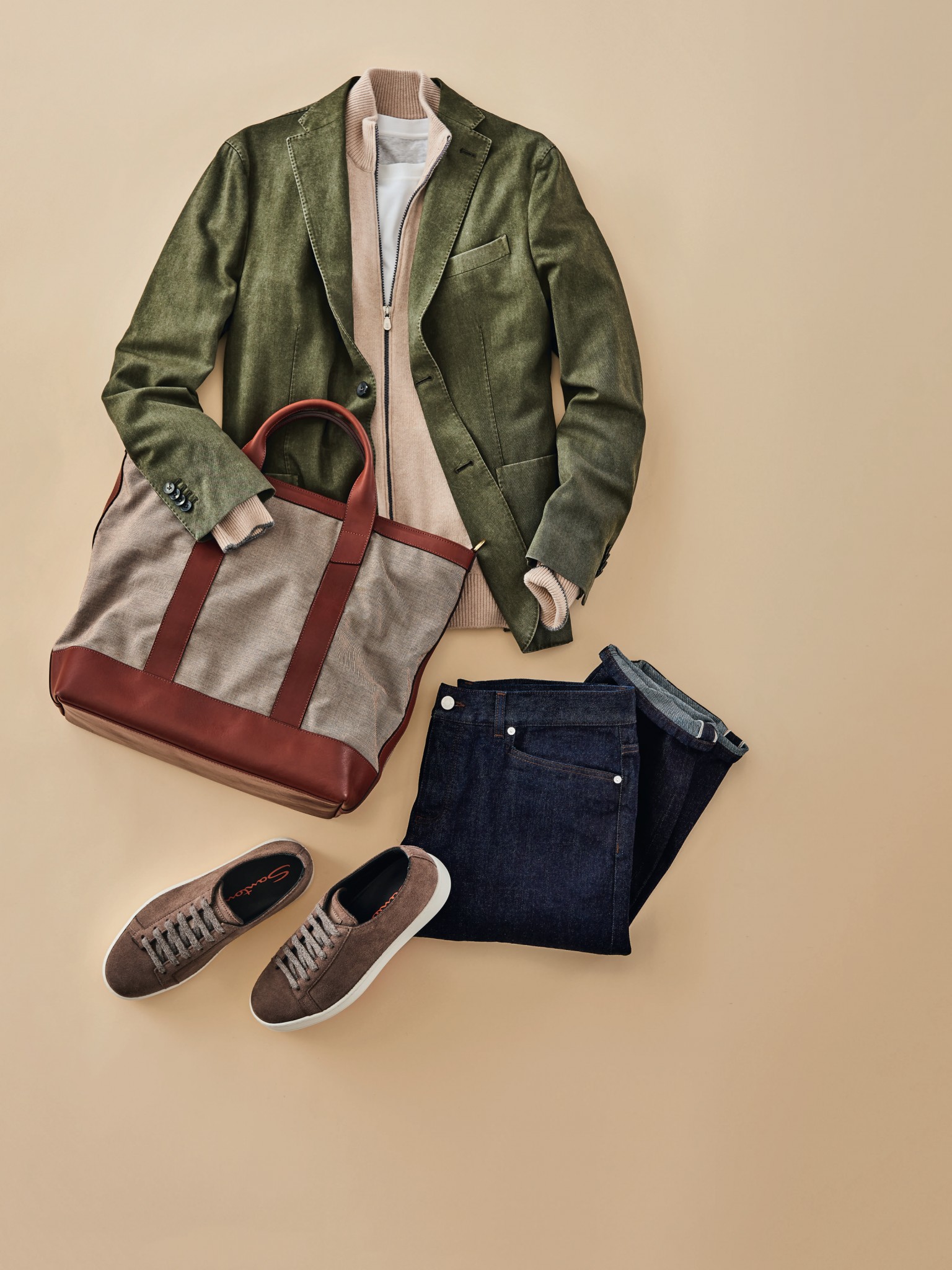 Надеть неструктурированный пиджак из тонкой шерсти — значит, добавить немного элегантности в повседневную одежду. Теперь вы готовы к уикэнду на природе с попутным визитом