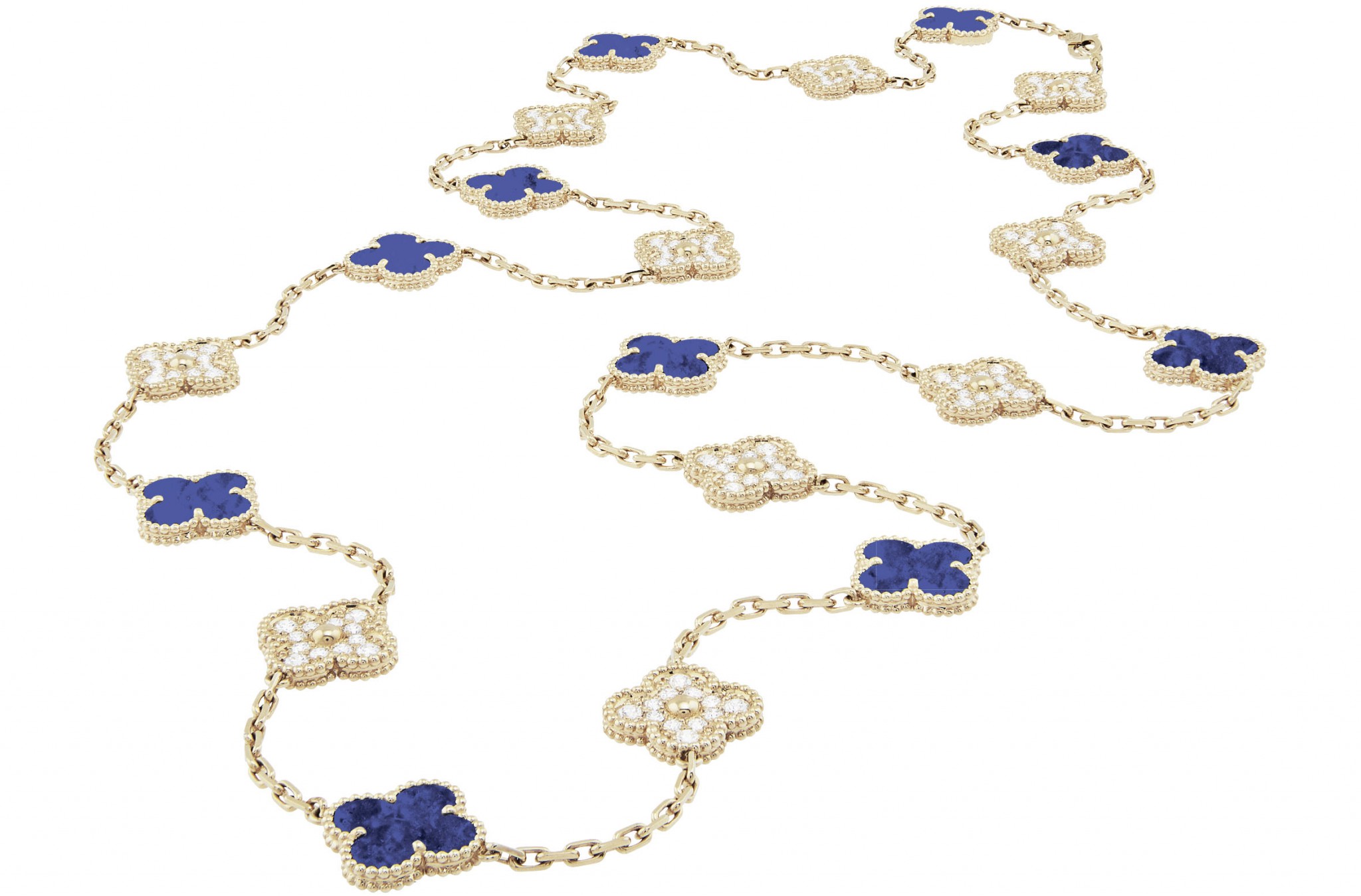 Двадцать четырёхлистников, обрамлённых золотыми бусинами и соединённых золотой цепочкой, — так выглядел сотуар Alhambra, выпущенный в 1968 году. Символы удачи обеспечили ему долгую и счастливую жизнь. «Украшения Alhambra оказались невероятно созвучными духу времени и социальным преобразованиям, коснувшимся в первую очередь женщин, — объясняет президент Van