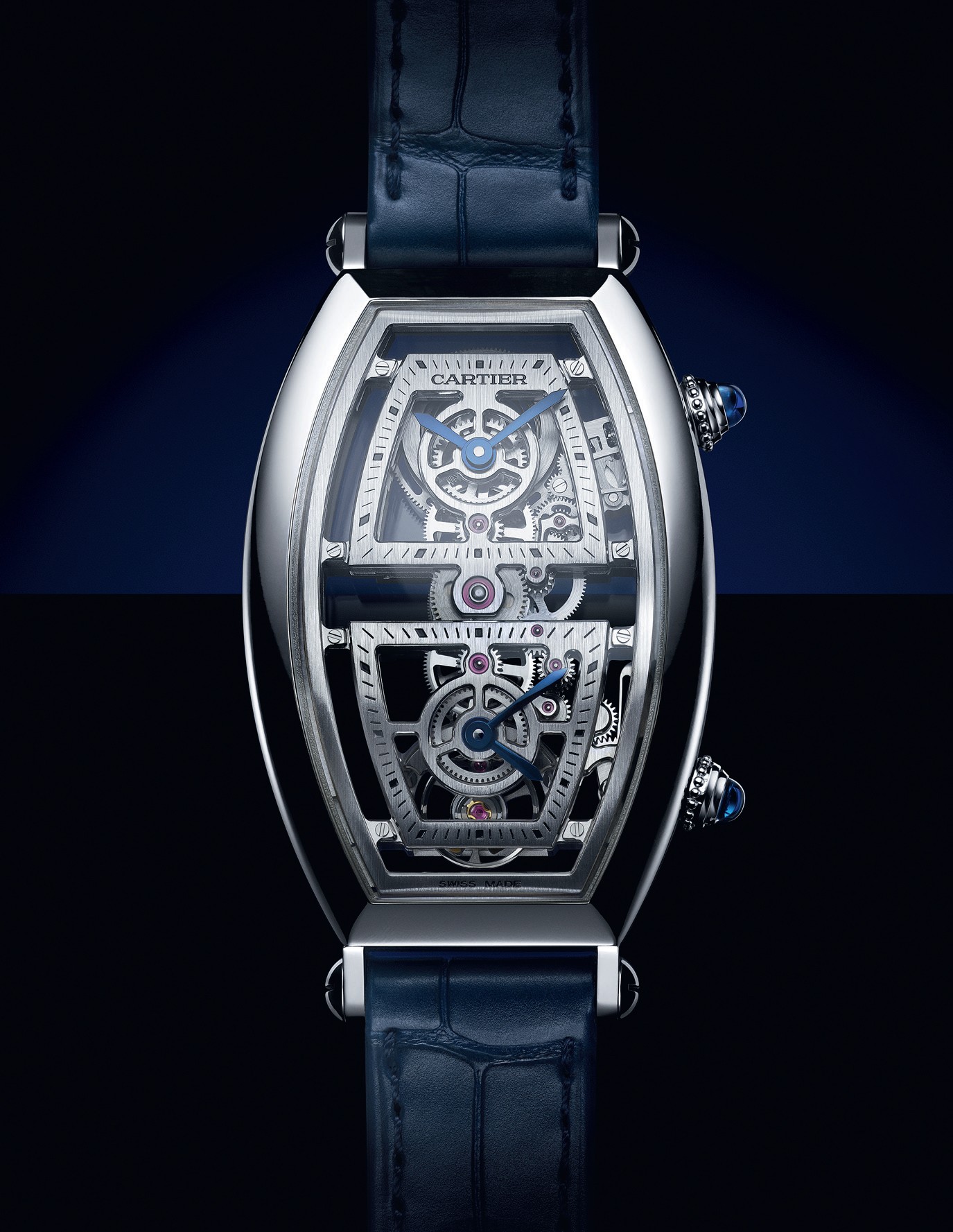 Аббревиатура CPCP расшифровывается как Collection Privée, Cartier Paris. Под этим названием на рубеже XX и XXI веков в традиционных для эстетики Cartier прямоугольных и бочкообразных корпусах выпускались модели с усложнениями, ознаменовавшие обращение Дома к высокому часовому искусству. За последние 10 лет сокращение CPCP вышло из оборота, но теперь возвращается для лимитированных серий. Так, модель с функцией второго часового пояса выпущена двумя сериями по 100 экземпляров в бочкообразных (tonneau, в арсенале Cartier с 1906 года) корпусах из розового золота или платины. Примечателен скелетированный мануфактурный механизм (его толщина 7,9 мм, запас хода 60 часов) с ручным заводом и линейной колёсной передачей, вытянутой между отметками «6 часов» и «12 часов». Часовая стрелка второго пояса устанавливается с шагом в 1 час нажатием на коронку в положении «4 часа».