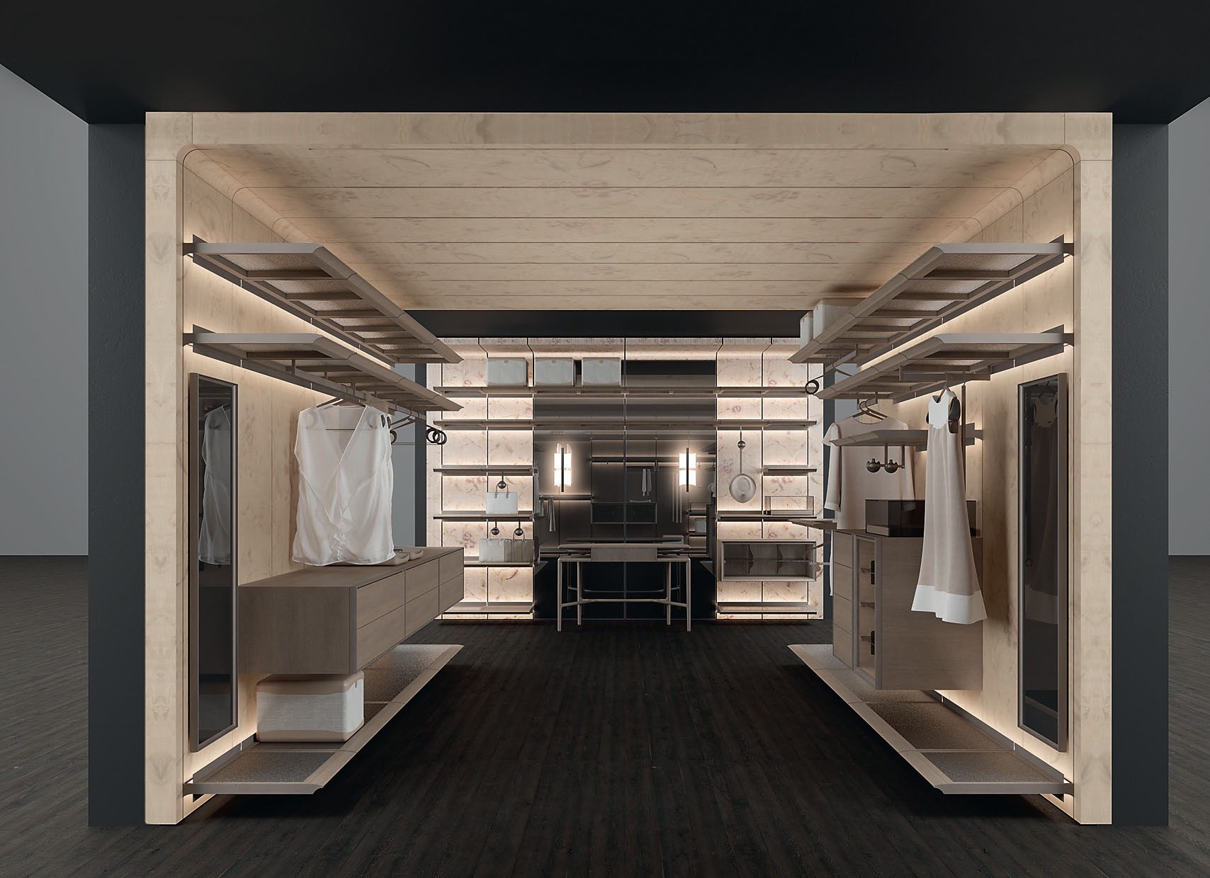 Гардеробная Giorgetti Reiwa создана из модульных блоков, которые легко дополнить или поменять местами. С японского её название переводится как «прекрасная гармония»