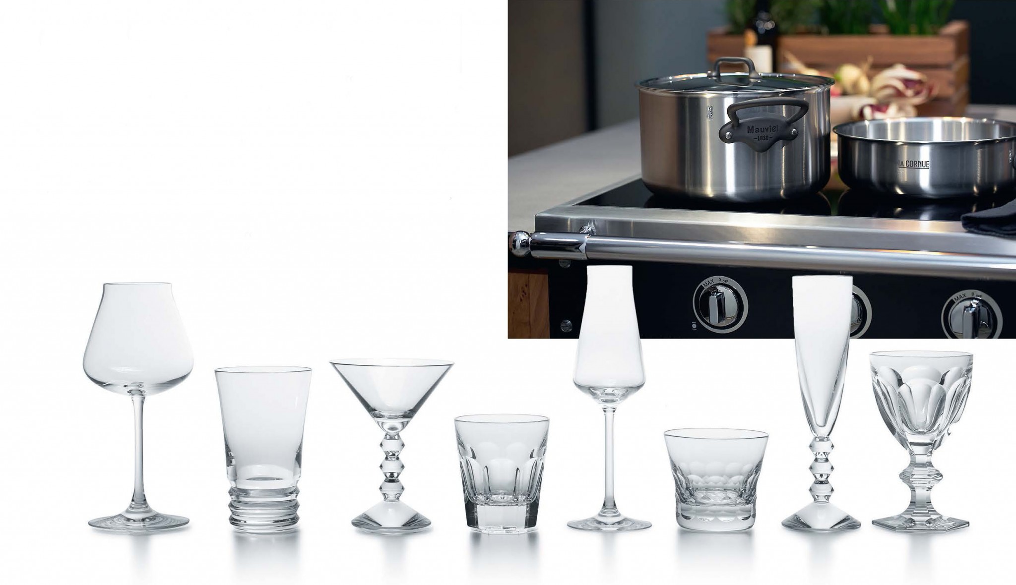 Новый индукцион- ный стол La Cornue был разработан, чтобы полностью вписаться в культо- вую эстетику линии Château, а посуда создана совместно с брендом Mauviel как прекрасное дополнение кол- лекции. Коктейль-набор Baccarat Cocktail Party включает 6 или 8 бокалов из разных коллекций бренда. Теперь не нужно покупать маркеры для вечеринок, вы точно не спутаете свой бокал с чужим.