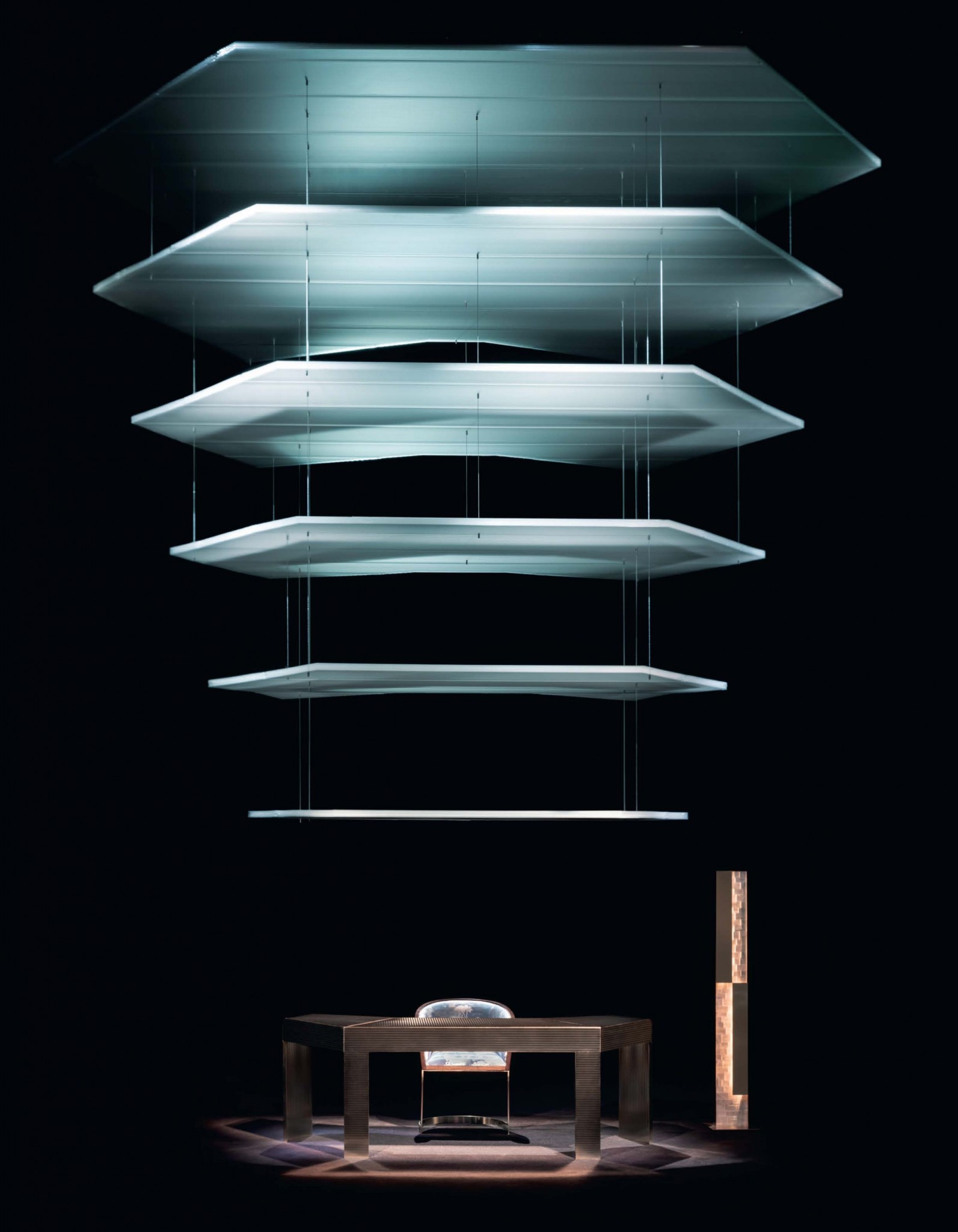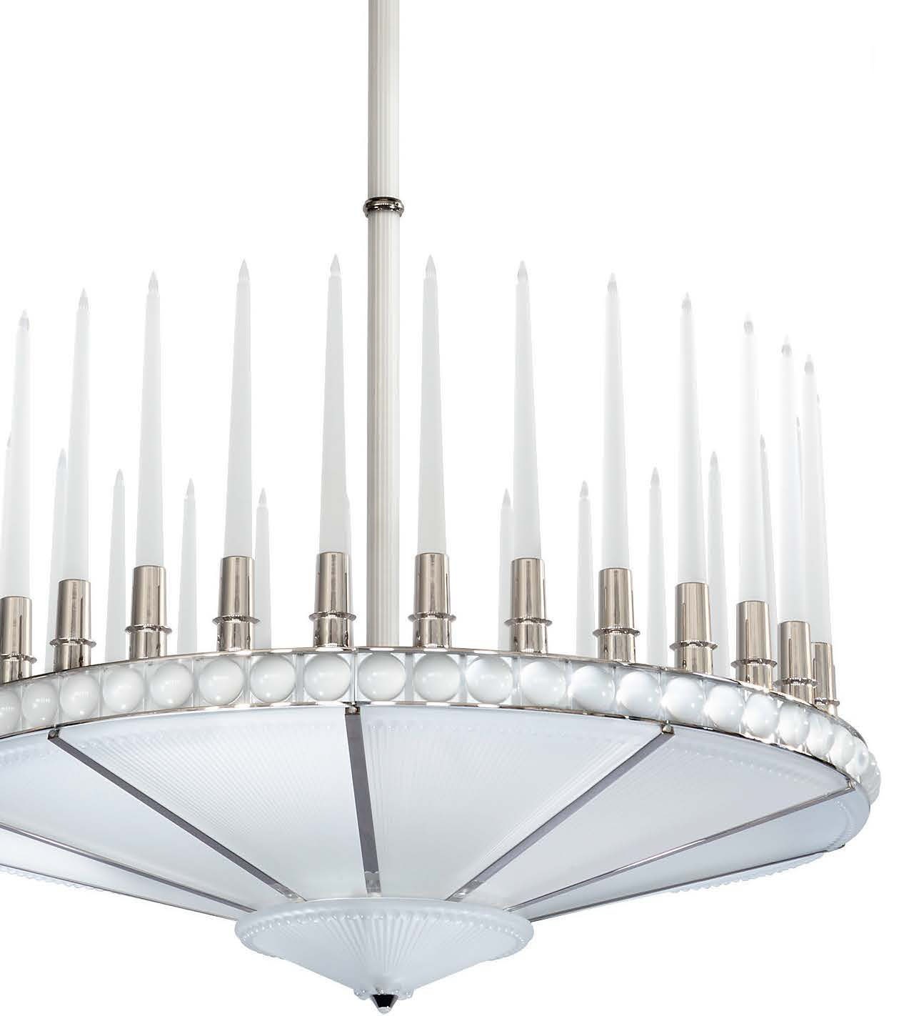 Дизайн люстры Lalique Perles Пьер- Ива Рошона отсылает к одноимён- ной лампе Рене Лалика 30-х годов и обыгрывает свечи как символ просвещения и поиска истины.