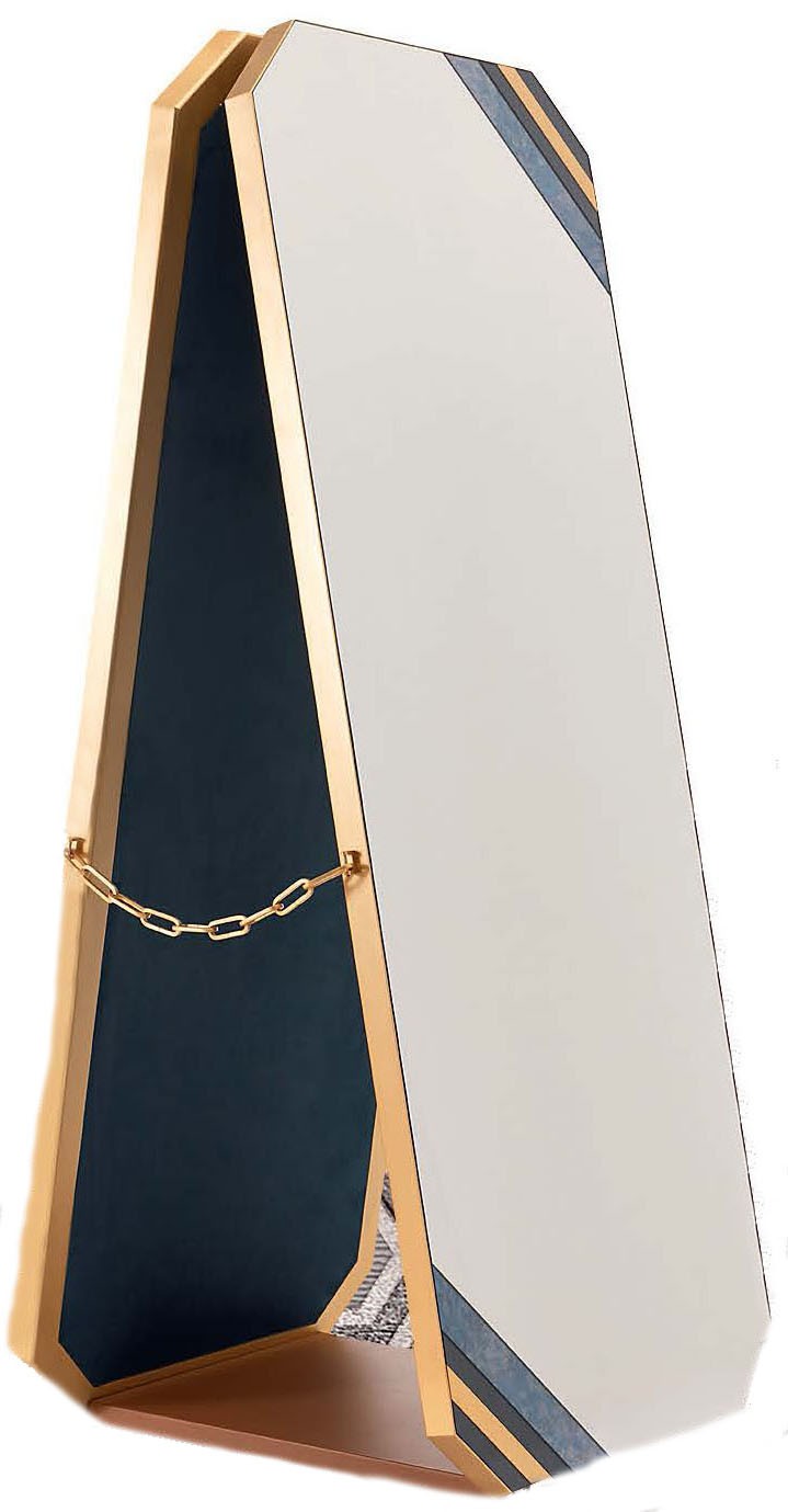 В оформлении зеркала в стиле ар-деко из коллекции Fendi Back Home дизайнер Кристина Челестино использовала классический орнамент Pequin, разработанный в 1987 году для первой коллекции Fendi Casa