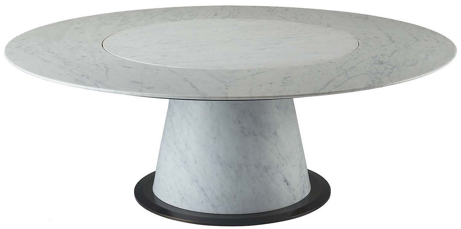 В центре обе- денного стола Promemoria из каррарского мрамора раз- мещён враща- ющийся круг — дань древним азиатским традициям.