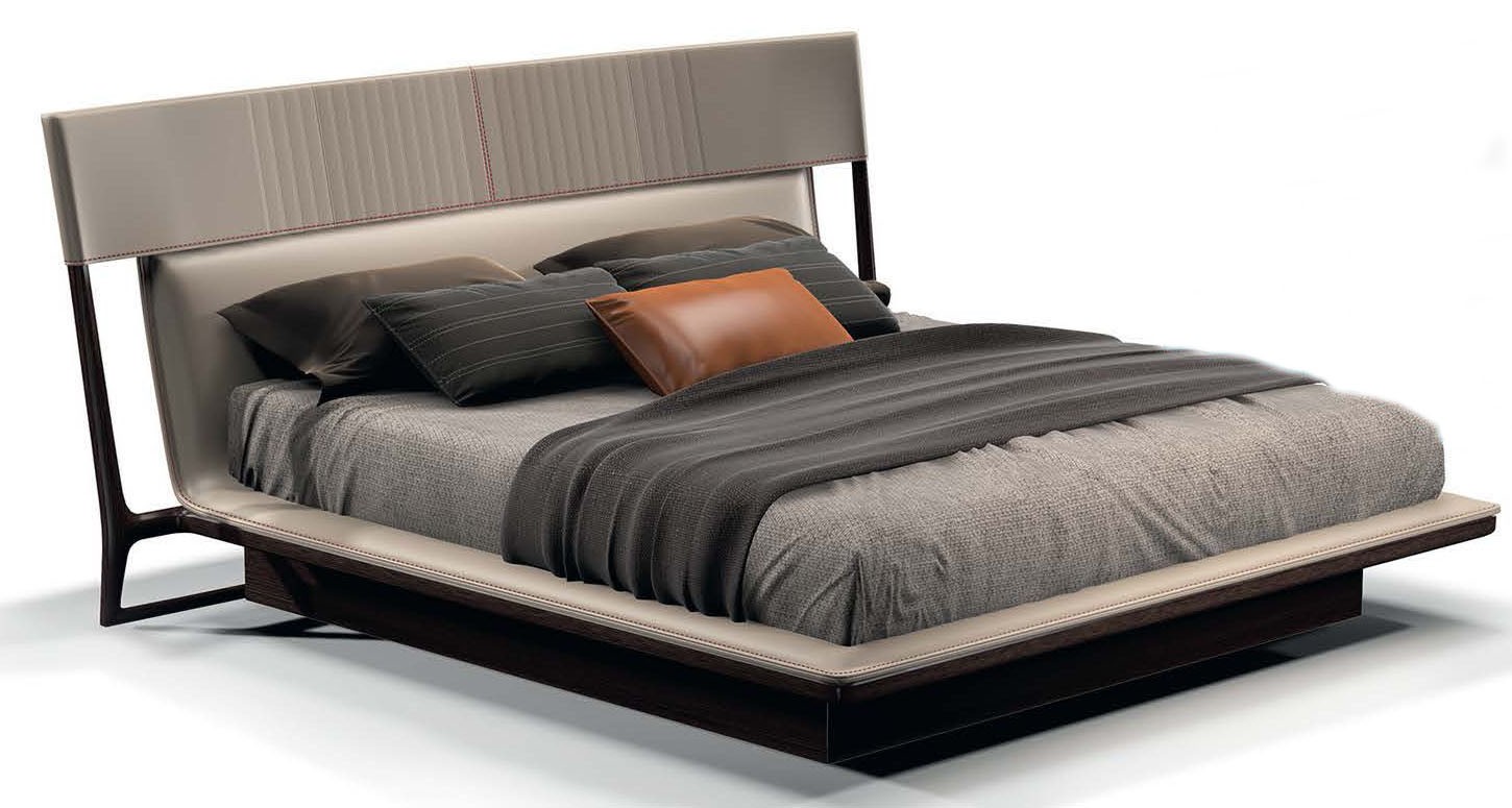 Резьба в виде вьющихся растений, а также вставки и детали из золотистого брашированного металла — кровать Turri c обтянутыми кожей изголовьем и боковыми панелями легко узнать по стилистическим элементам, характерным для всей коллекции Vine.