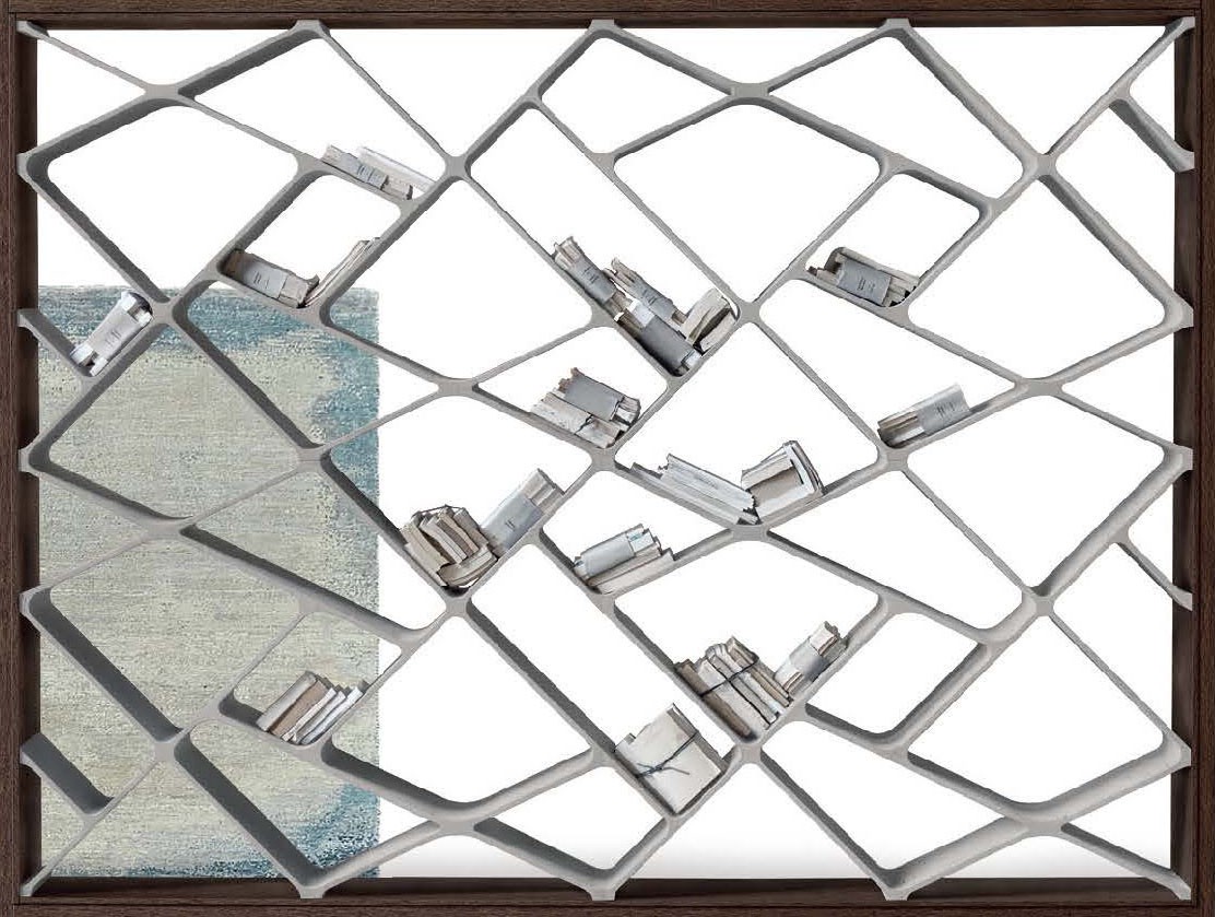 Каркас стеллажа Alivar Shanghai из коллекции Home Collection изготовлен из дуба, а полки — из полиуретана, покрытого бетоном, создающим необычные очертания.