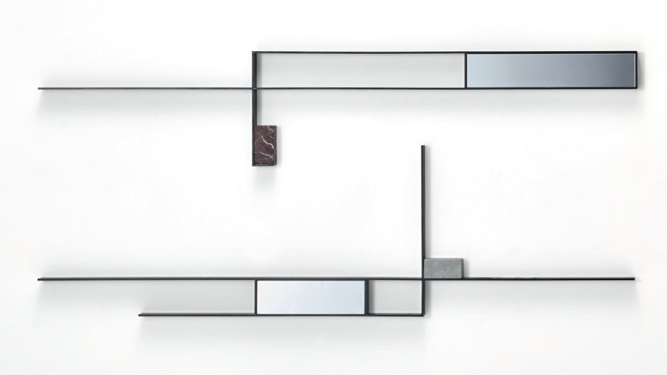 Настенные инсталляции из металла, зеркал и мрамора Mirror Lines для MDF Italia создали дизайнеры Ирен Гольдберг и Пицоу Кедем, вдохновившись видом рисовых полей с воздуха.