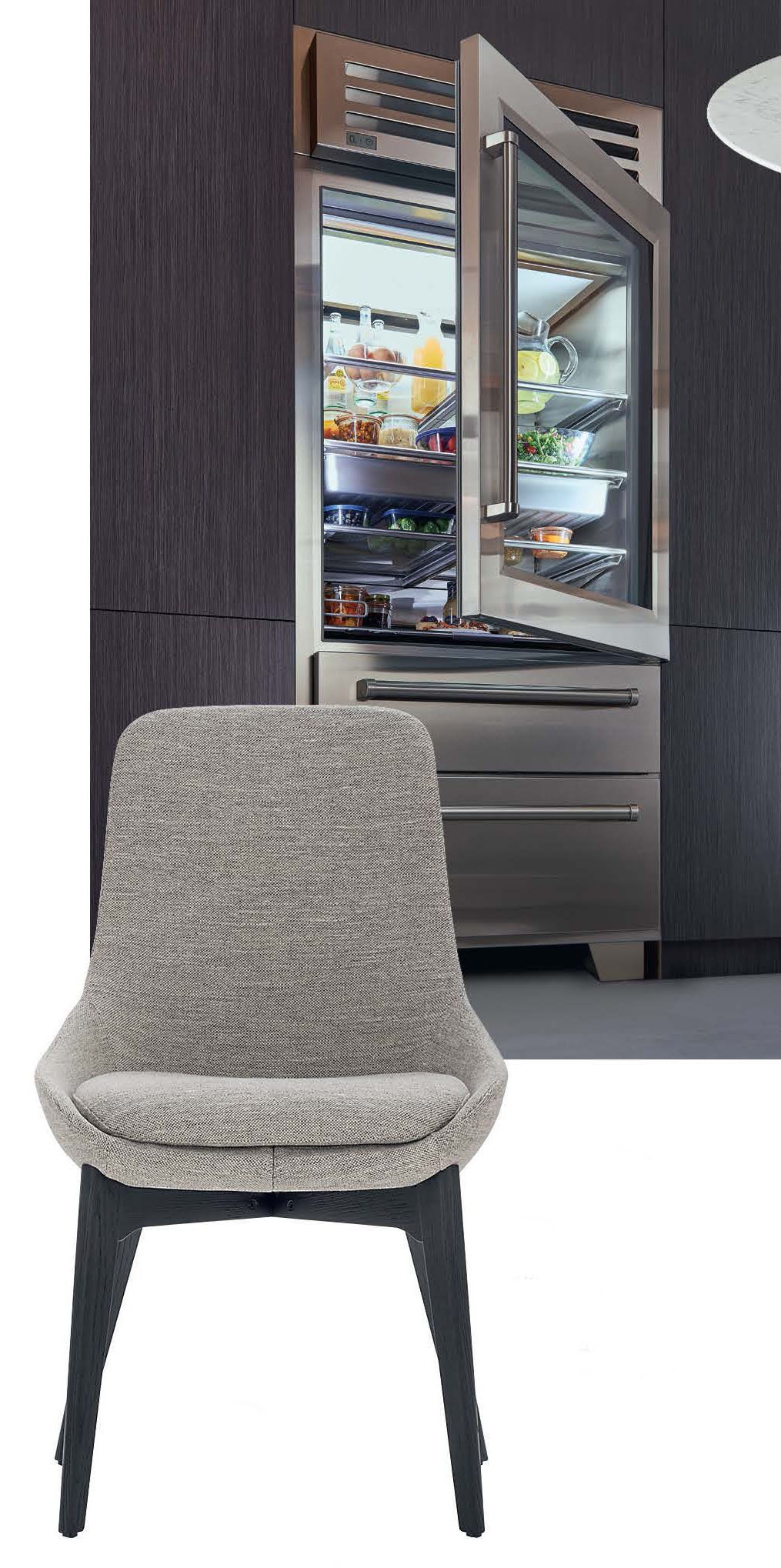 В новой версии холодильника Sub-Zero серии PRO используется система антибактериальной очист- ки воздуха, изначально разработанная для NASA. Система нейтрализует газ этилен, обновляя воздух в холодильнике каждые 20 минут. Минималистичный силуэт стула Linear, Ditre Italia, изготовленного по дизайну студии Edi & Paolo Ciani Design, делает его пригодным как для дома, так и для офиса.