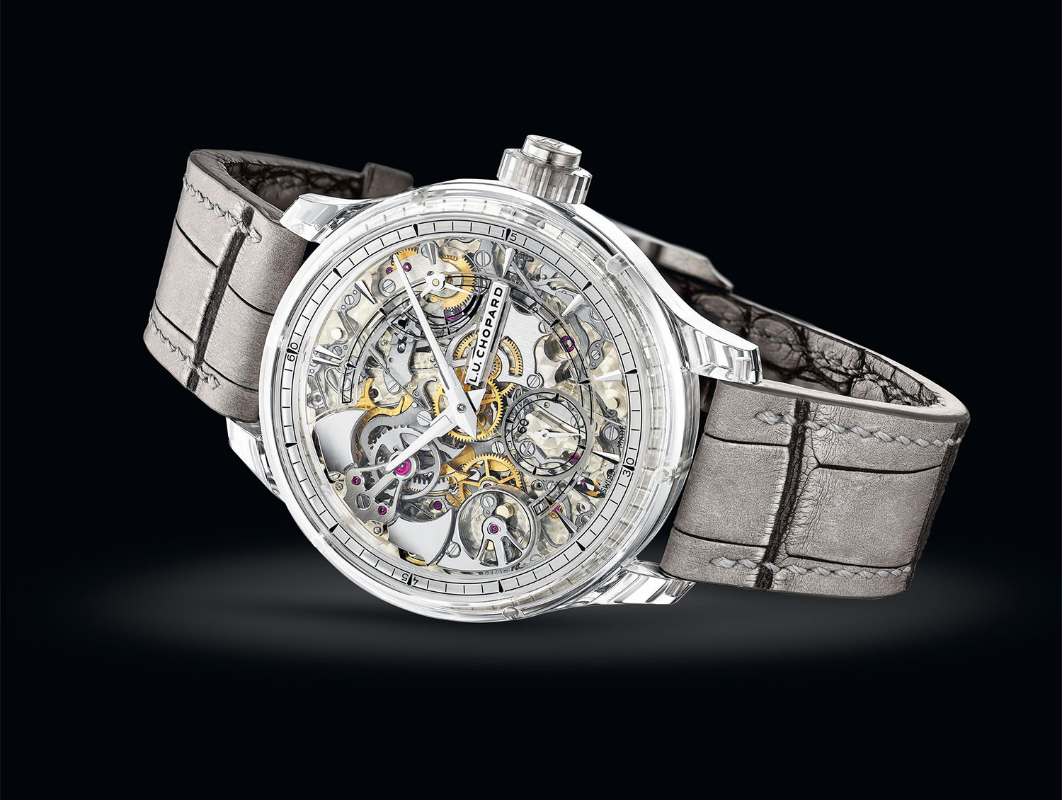 В новой версии Chopard L.U.C Full Strike Sapphire мануфактура из Флёрье представила минутный репетир L.U.C 08.01-L, состоящий из 533 деталей. На этот раз механизм, в 2016 году удостоенный награды на женевском Гран-при, воплотился в сапфировой версии. Из сапфира изготовлены как сами гонги, так и весь корпус диаметром 42,5 мм, что обеспечивает более чистое и резонансное звучание. На механизм подано 5 патентов, всего будет выпущено 5 экземпляров.