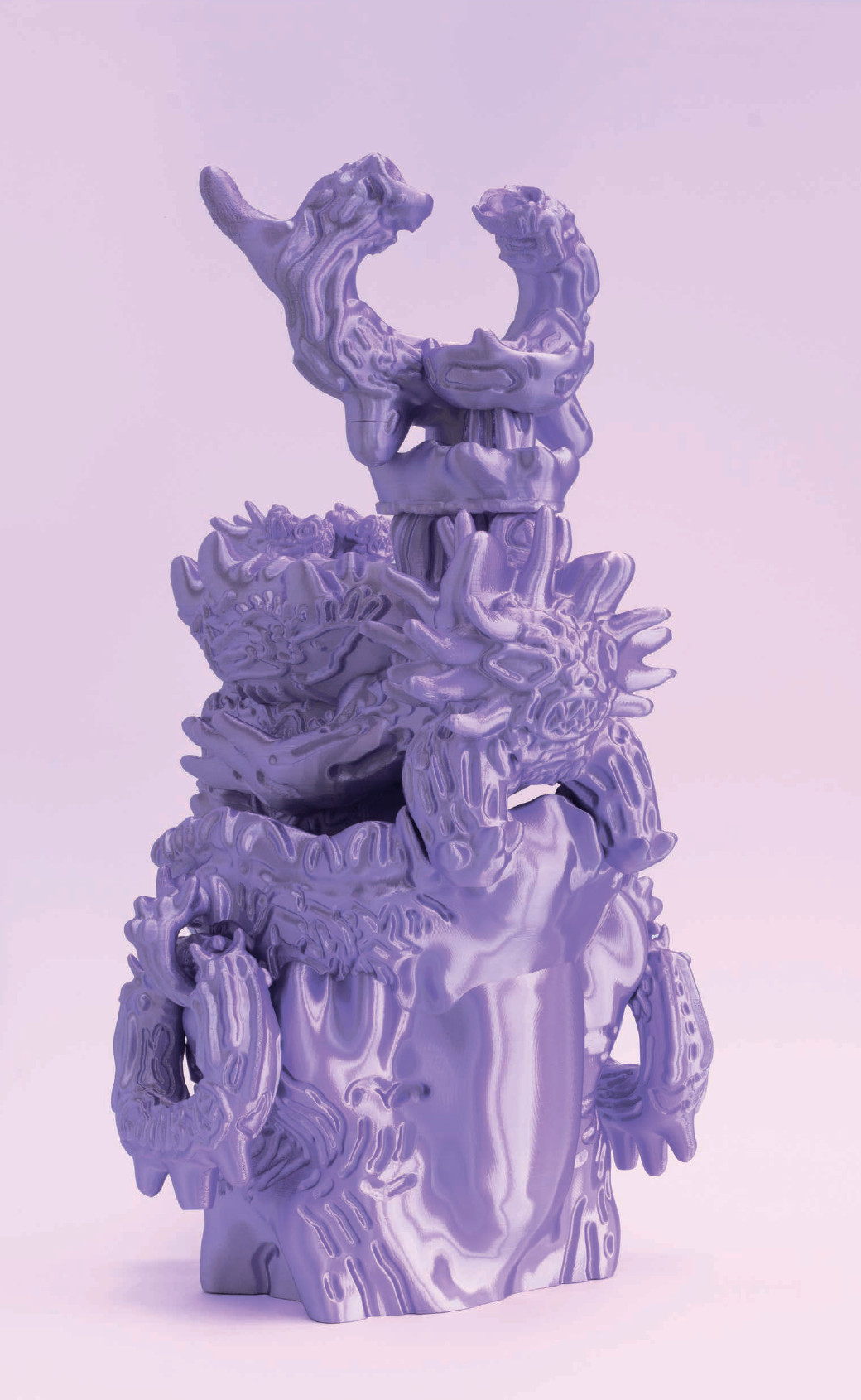 Одри Ларж никогда не стремилась мастерить что-то своими руками. В 2017 году в магистратуре нидерландской Академии дизайна в Эйндховене ей, как и всем студентам, приходилось работать по дереву и металлу, но Ларж больше нравилось придумывать дизайн на компьютере. Вопрос был лишь в том, как превратить цифровые эскизы в реальные предметы. Ответом стала 3D-печать. Вместо того чтобы кропотливо ткать коврик или лепить кувшин, можно нажать кнопку Print, и виртуальный объект превратится в физический. Поначалу технология её не слишком вдохновила: «То, что я получала на выходе, было довольно уродливым. Модель на экране компьютера всегда выглядела в разы привлекательнее». Но исключить из процесса «ремесленную составляющую» было слишком заманчиво, и Одри решила продолжать: распечатывала объекты с заведомыми дефектами, чтобы определить границы возможностей машины; если заходила в тупик, искала от веты в YouTube и на форумах. В итоге её вазы и чаши стали выглядеть так, будто явились из цифровых миров «Трона» и «Первому игроку приготовиться». «Я ничего не раскрашиваю, не занимаюсь отделкой, — говорит Ларж. — Мне нравится, что объект просто выходит из компьютера, из машины. Я ничего не меняю, он полностью соответствует файлу».