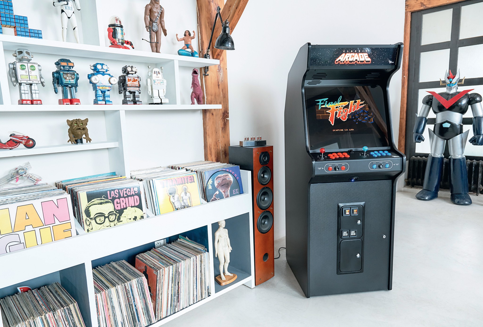 Вернуться в детство, а точнее в разгар 80-х, позволит игровая ретроконсоль французской фирмы Neo Legend под названием Vizion Arkador. У каждого из аппаратов в памяти около 700 классических игр, но есть возможность добавить и более современные варианты, выпущенные для Xbox и PS1. Игровой автомат делают на заказ во Франции, поэтому каждая деталь, от массивных джойстиков до прорези для жетонов и даже типа игрового пульта, обговаривается особо. Экстерьер бывает самых разных цветов. Но интереснее выбрать скин, разработанный в коллаборации с художниками, например, иллюстратором из Японии Йоко Хондой, которая славится розово-зелёными пейзажами в стиле сериала «Полиция Майами», или Грегом Леоном Гийменом, рисующим комиксы а-ля Лихтенштейн или Стэн Ли, от $3155.