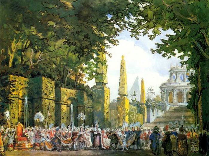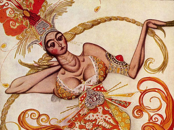 И вот в таких культурно-исторических условиях в Европе появился Сергея Дягилев со своими Русскими сезонами. То, что он привез, — это был отдельный вид искусства. Постановки на специально придуманные сюжеты; симфоническая музыка, которая раньше не использовалась в балетах либо которая была написана специально, по заказу. Для Европы это была диковинка. Кроме того, в это же время в Европе расцвела мода на ориентальность, ар-нуво. Все великие участники антрепризы очень чутко уловили эту тенденцию, развили ее, культивировали все эти ориентальные сюжеты. В дальнейшем все художники, которые работали в этой антрепризе, стали очень модными в Европе. Они создавали эскизы для трикотажа, мебели, ювелирных украшений.