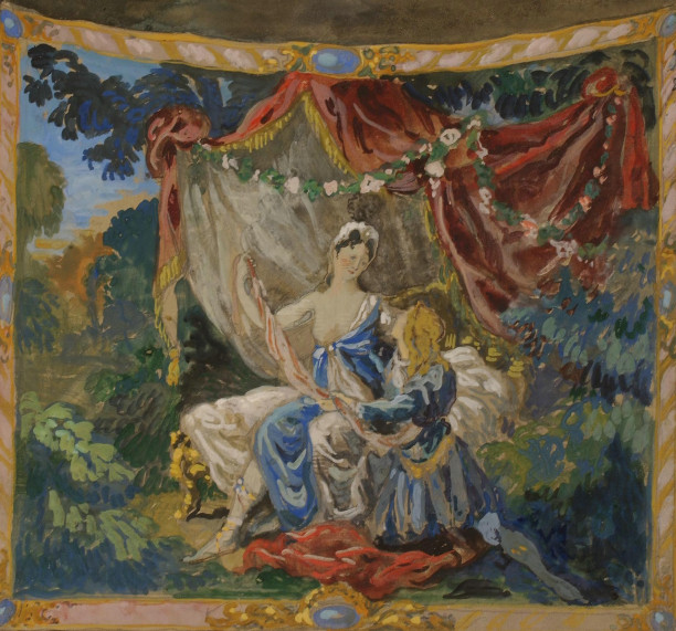 Обложка раздела Русские сезоны: краткая история: Леон Бакст. Эскиз костюма для балета Игоря Стравинского «Жар-птица» (фрагмент). 1910. Государственный центральный театральный музей имени А.А. Бахрушина, Москва