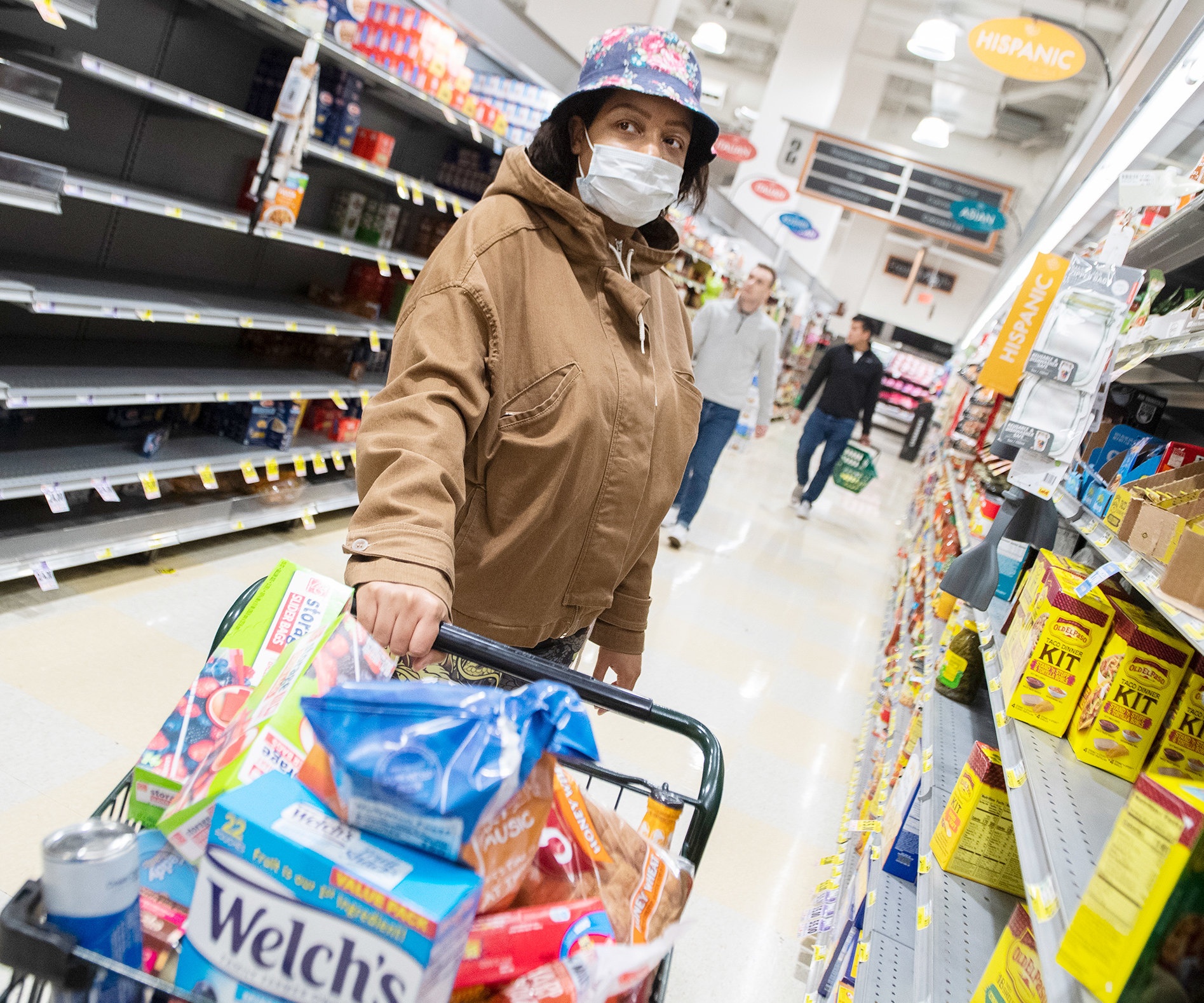 У американцев в целом принято покупать большое количество продуктов. Типичная картина – американская семья выходит из гипермаркета с полностью набитой тележкой. Руководитель сети магазинов Morton Williams Орландо Олав рассказал телеканалу CBS, что его бизнес во время коронавируса вырос еще больше: примерно на 10%. По его словам, "больше всего покупают воду, консервированные супы, консервы, например, банки с тунцом".