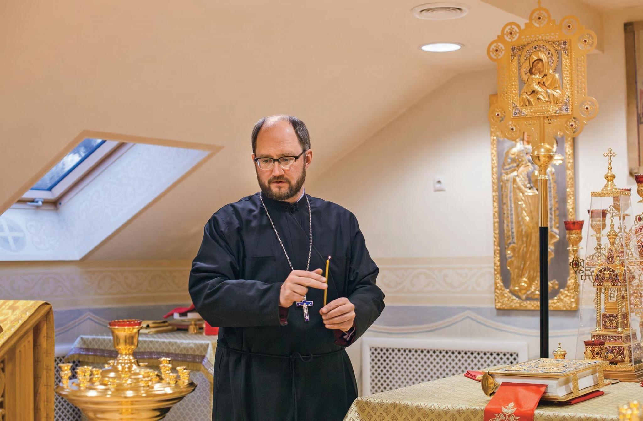 Протоиерей Ткаченко делает несколько вдохов прежде, чем начать говорить: