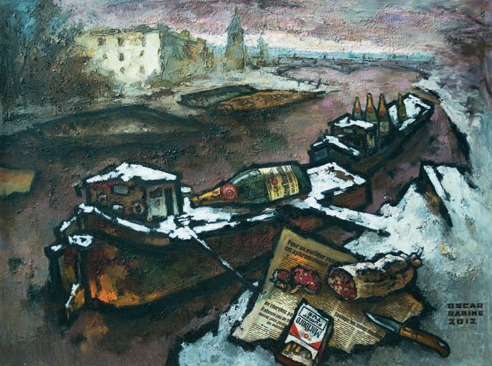 Оскар Рабин — живая легенда советского нонконформизма, возникшего в 60-е годы в противовес официальному искусству. Он был одним из организаторов скандальной «Бульдозерной выставки», ставшей переломной точкой в борьбе художников андеграунда за право на существование. За картины, «искажающие советскую действительность», художника выслали во Францию и лишили советского гражданства. Сегодня ему 90 лет, он по-прежнему живет в Париже, входит в десятку самых дорогих из ныне живущих русских художников и, кажется, знает, как не чувствовать себя полным идиотом, глядя на творения современных художников