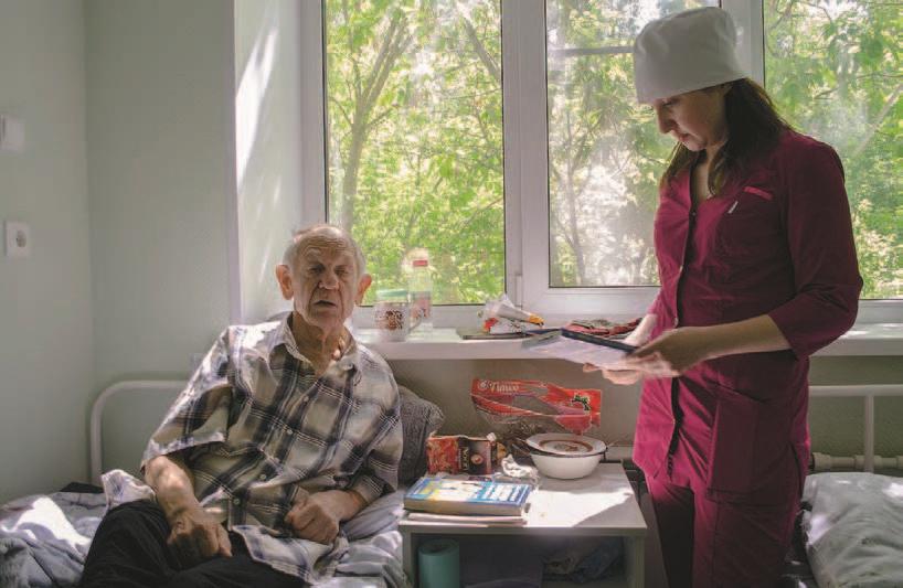 — Внутри тяжелая и напряженная атмосфера, пациентам нужно себя развлекать. Поэтому договорилась с местным изданием, что часть тиража они будут поставлять нам. Все равно их номера распространяются бесплатно, никаких убытков, — объясняет она и уверенно направляется в один из корпусов. — Несмотря на занятия в институте, рабочие смены у меня, как у всех, через сутки. Мою полы, туалеты, ухаживаю за пациентами. Работать нужно со всеми, за стариками глаз да глаз, многие не могут позаботиться о себе, особенно после операции. Кого с ложки покормить, кого приподнять с постели, кому памперсы поменять.
