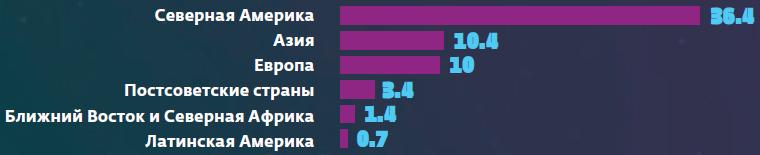 Затраты на космические программы по регионам мира (млрд долл.)
