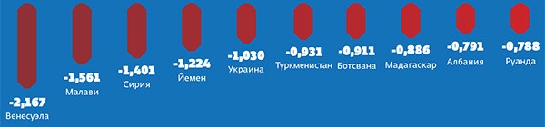 Какие страны за последний год стали заметно несчастнее (наибольшее падение индекса счастья)