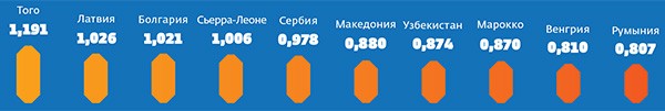 Какие страны за последний год стали заметно счастливее (наибольший рост индекса счастья)