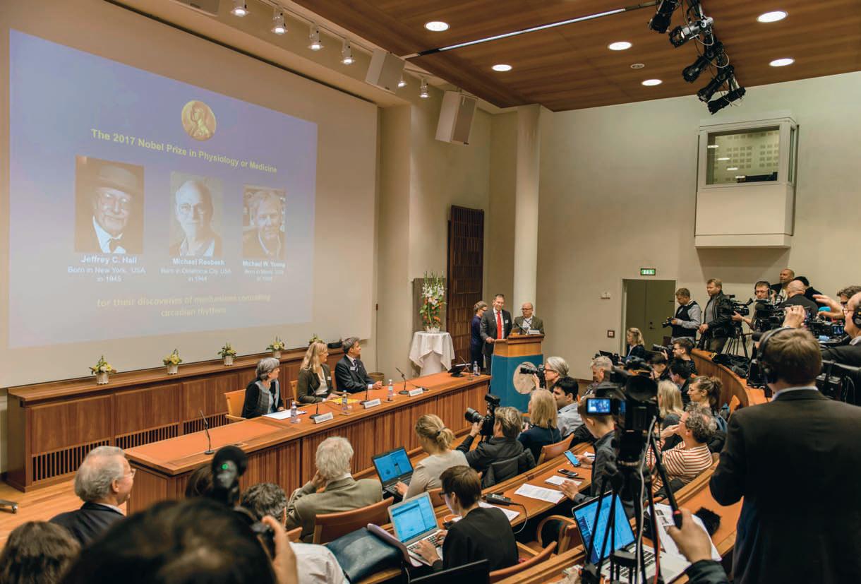 Исследования сlock-белков начались еще в 70-х годах, когда калифорнийские ученые смогли найти первый из «часовых» генов — period, влияющий на циркадный ритм. Их работу продолжили сегодняшние лауреаты Нобелевской премии Джеффри Холл и Майкл Росбаш из Брандейского университета, а также Майкл Янг из университета Рокфеллера в Нью-Йорке. Исследователям удалось изолировать ген period, а также на примере мушек-дрозофил увидеть, как белок PER, кодируемый этим геном, накапливается ночью и разрушается днем, задавая такт работы множества клеток.