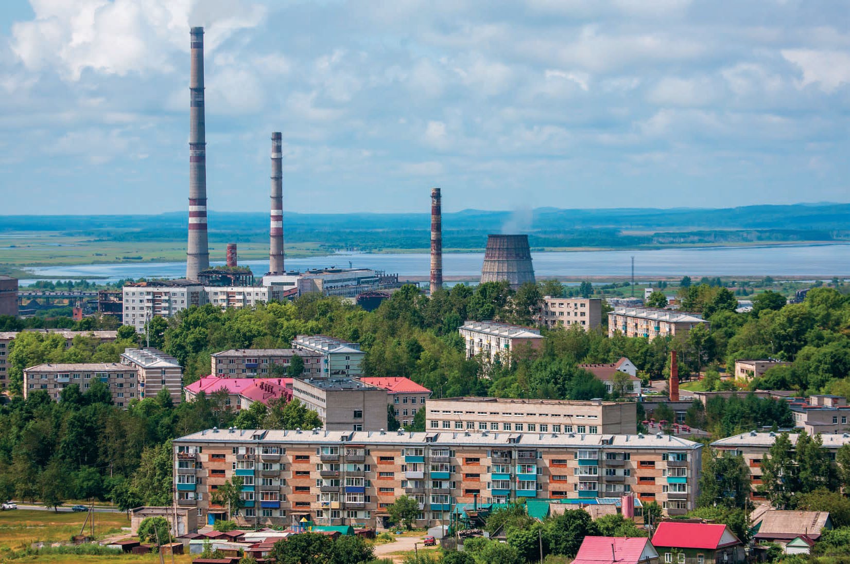 Так вот, на одном из таких крутых берегов и стоит город Амурск. Появился он не на пустом месте. Когда-то в низовьях реки было стойбище рыболовов нанайцев, село Падали-Восточное. В 1958-м место приметили советские власти — по всем параметрам оно подходило для целлюлозно-картонного комбината. Нанайцев переселили, а на их место приехали со всех концов страны строители нового советского будущего и города Амурска.