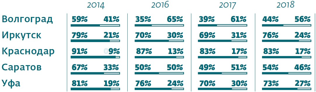 Место проведения опроса: Волгоград, Краснодар, Саратов, Уфа, Иркутск