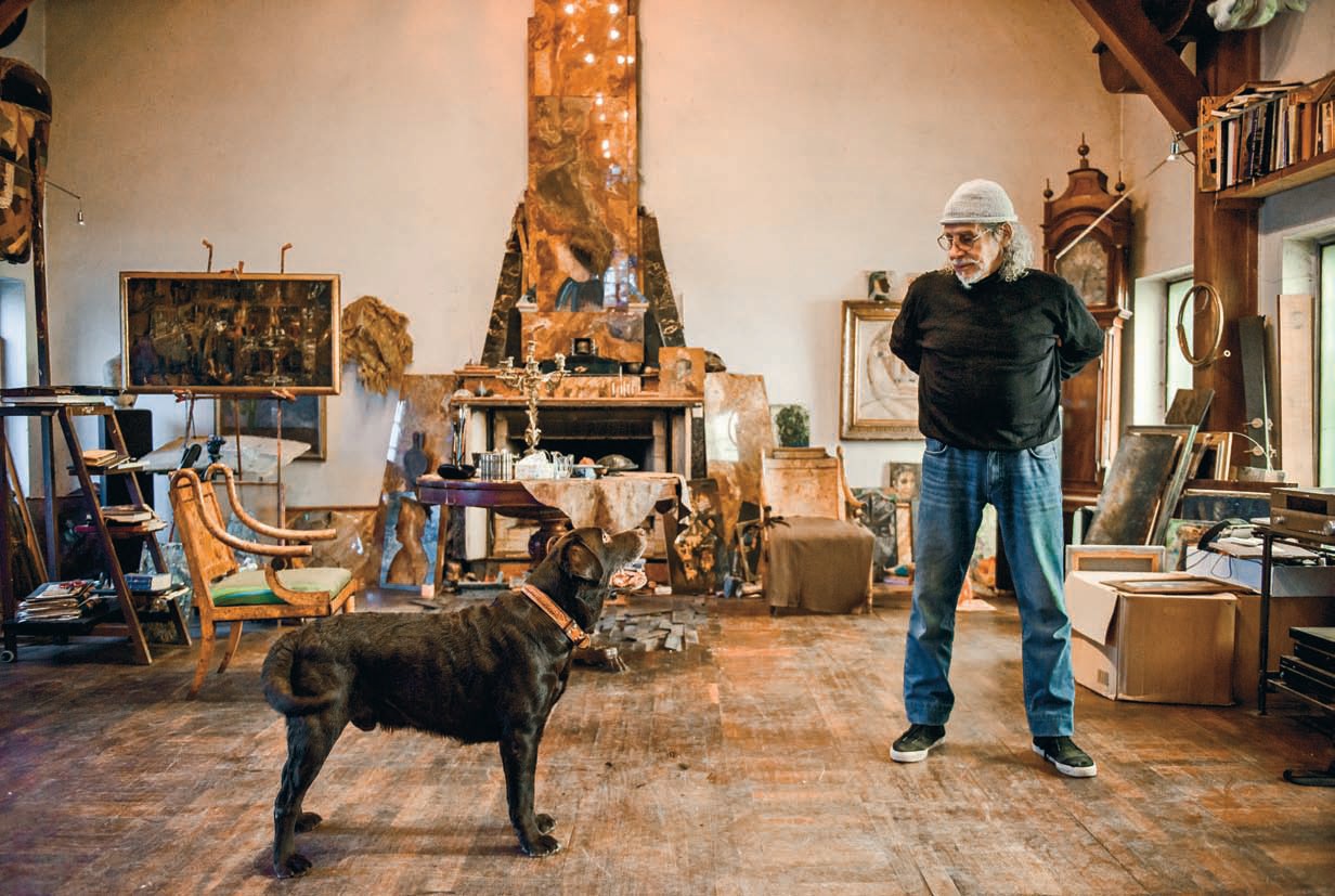Жители планеты Плюк паркуют летательный аппарат — пепелац — в пустыне: «Ку!». Детали этого причудливого мира «Кин-дза-дза» Данелии придумал художник Теодор Тэжик — равно как и аллегоричный мир «Сказки странствий» Митты, а еще киномиры Кайдановского… «Выглаживая собой пейзажи», Тэжик едет на машине из Праги в Москву, где остались друзья и дом в бывшей трансформаторной будке. А потом обратно в Чехию, где в самом большом европейском зернохранилище балка за балкой строится Театр в полях. Скульптуры Тэжика стоят во многих европейских городах, он создает костюмы, декорации и даже музыкальные инструменты для театров, но сам остается в тени. Старается ограждать себя от большого количества критиков, зрителей, представителей прессы — не саморазрушаться. Корреспондент «РР» побывала в московской мастерской художника, с которой он готов расстаться.