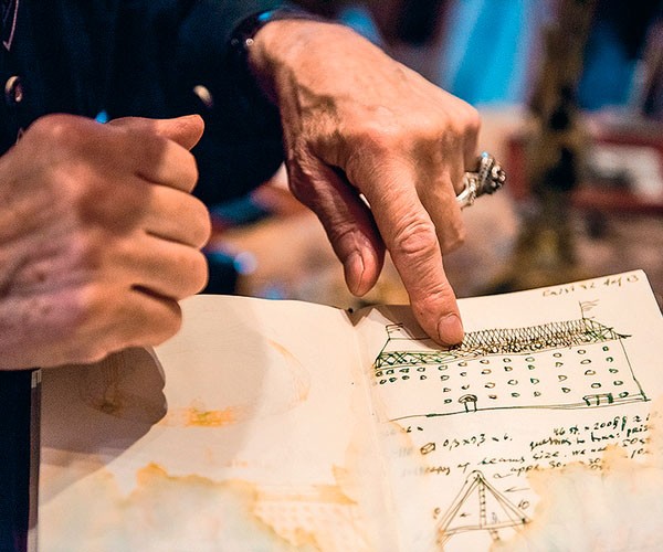Теодор протягивает мне толстую книгу в коричной обложке с приятными желтоватыми страницами: «Правда,вкусненькая бумага?» В ней разные рисунки, «глупые» и «хорошие», эскизы костюмов, скульптур. На одной из страниц — сценография сыпки, самого большого в Европе зернохранилища (дата постройки — 1730 год). Сейчас это здание в 40 километрах от Праги — дом Теодора Тэжика и будущий Театр в полях, с кинопавильоном и сценой, где художник мечтает объединять в действии актеров и зрителей. Пространство, где театр должен жить, не прерываясь на будни.