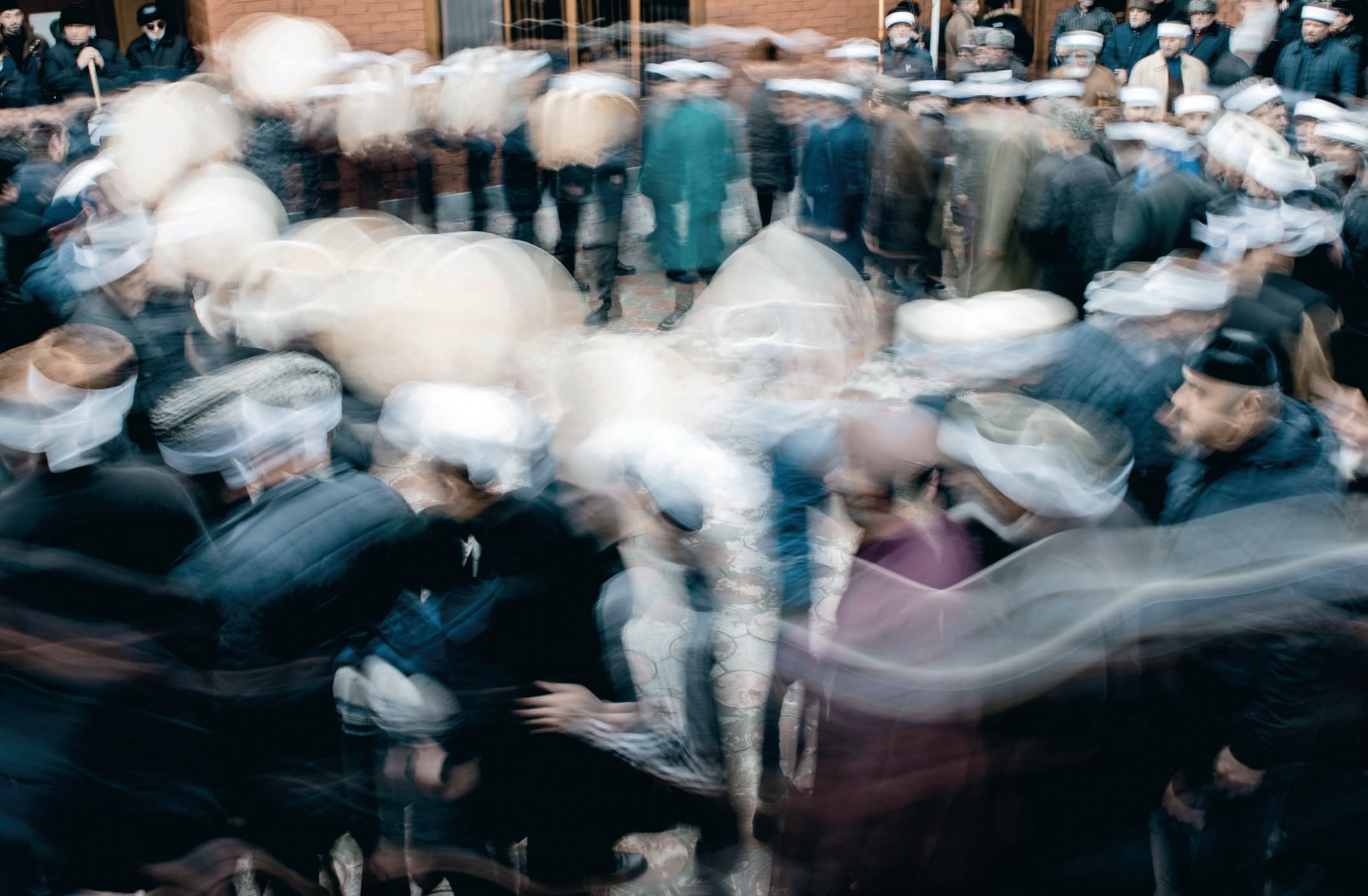 В центре была пустота. Вокруг вращались широкие кольца: сотни мужчин двигались как один под грохот бубнов из козлиной кожи и бесконечные выкрики «ля илляха иль алла» — «нет бога кроме Аллаха». Белые ленты на папахах сливались в единый круг. По преданию, они увеличивают благодатную силу действа в семьдесят раз. Кольца замирают, раскачиваются на месте и движутся обратно. Голоса все громче. Сотни ног вышагивают в такт, словно части единого тела. Только подпрыгивают порой в азарте лихие музыканты, ускоряя и без того быстрый темп. Уже почти час длится кружение. Вертится небо, вращаются стены дома и столы с угощением. Только центр остается неизменным. Но каждый участник обряда чувствует кожей, что там больше не пустота. Там — присутствие Бога.